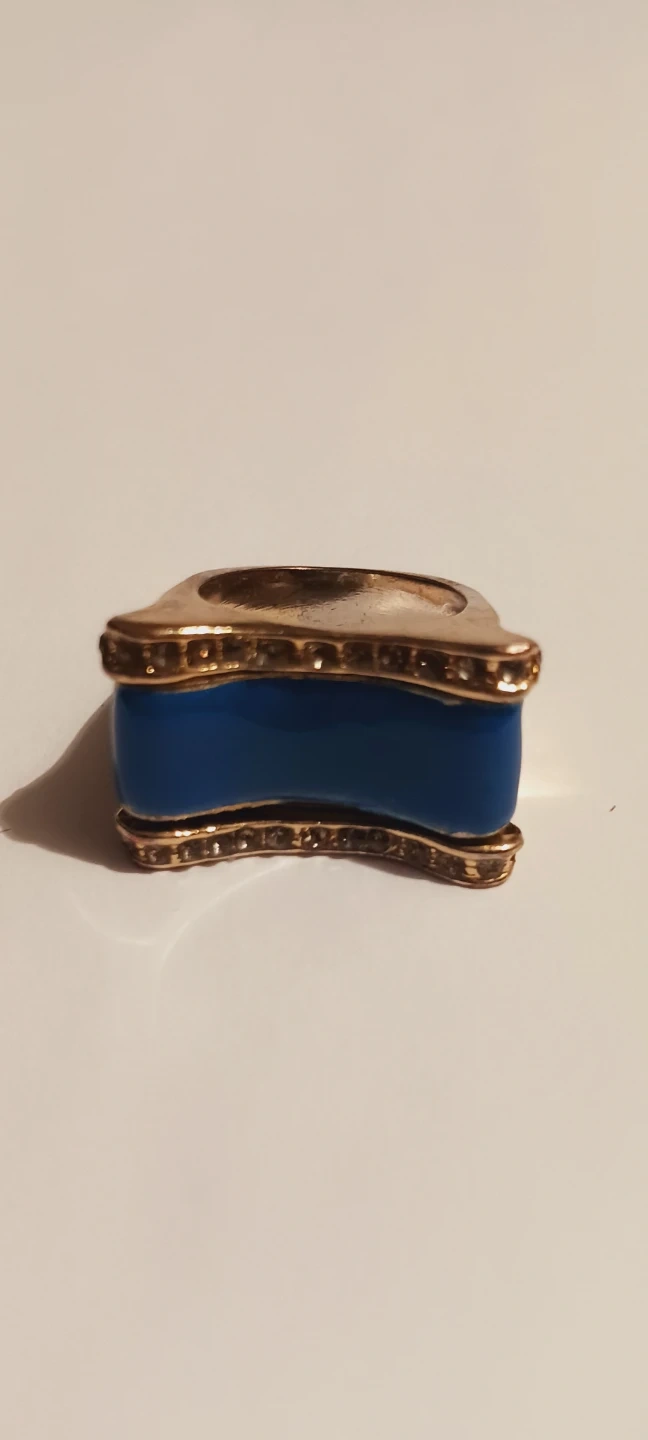 Blue Enamel Gold Tone Ring. Size 6.