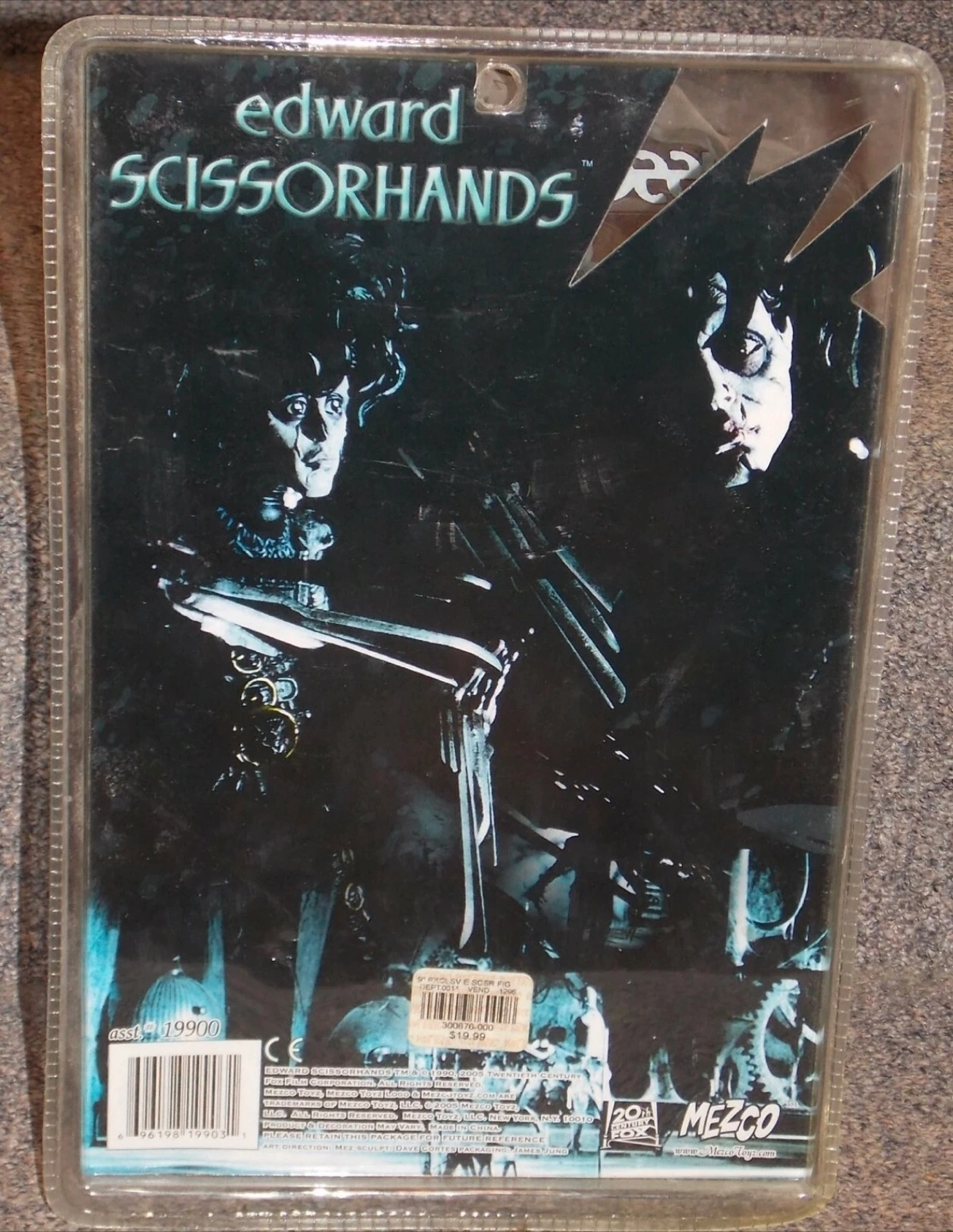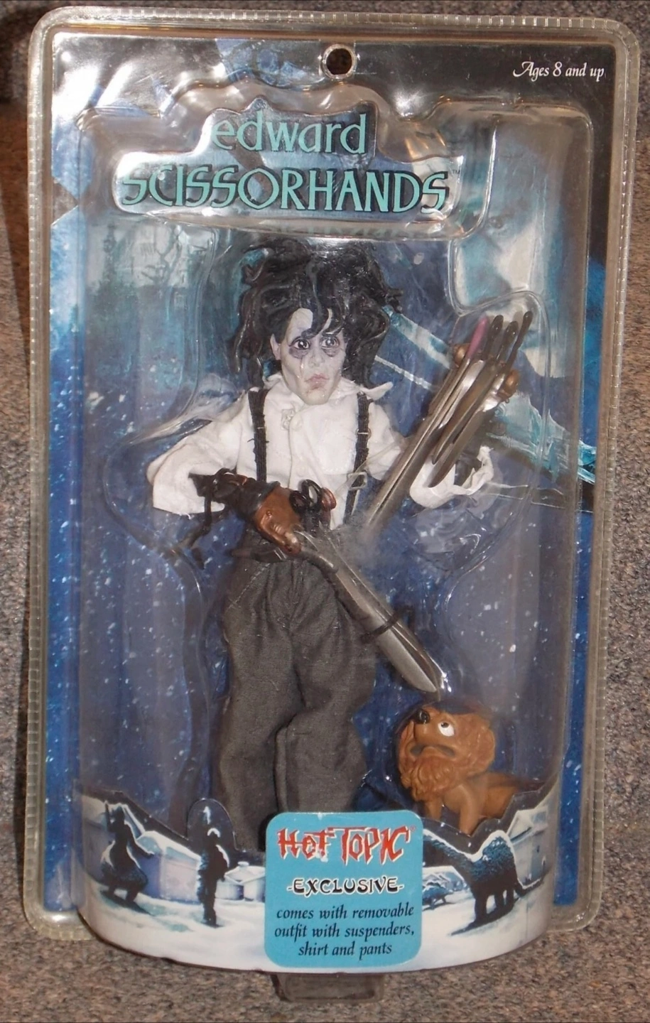 10Figure of Edward Scissorhands in original packaging. Comes with a removable outfit and accessories. Consider adding this to your collection, it would bring a sense of comfort.