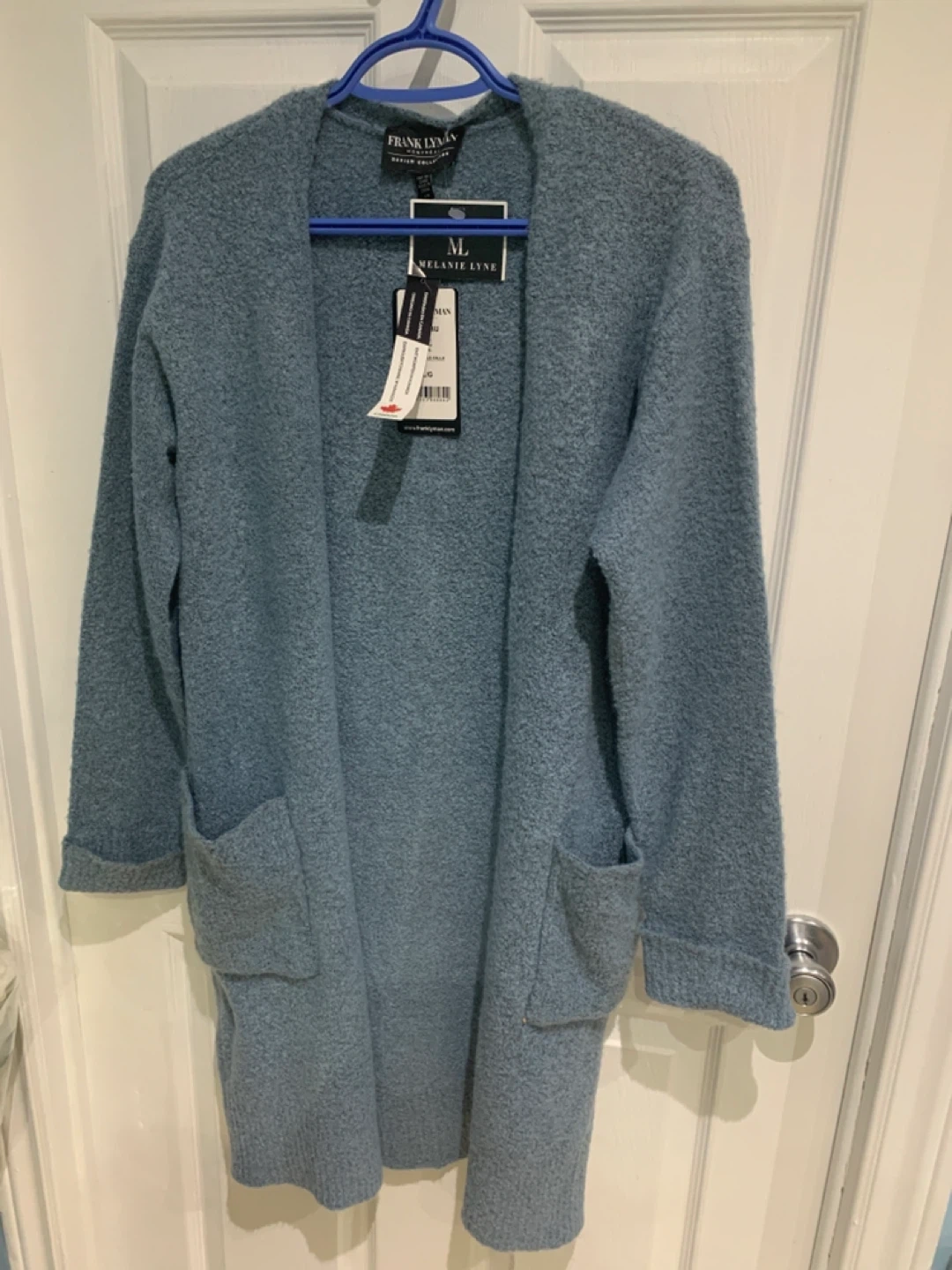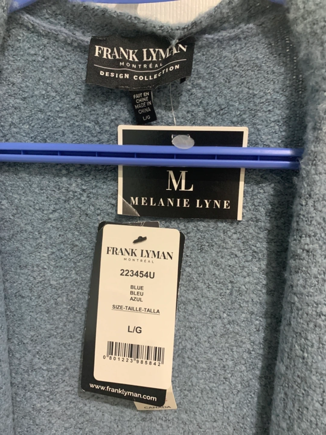 Brand new Frank Lyman cardigan in a soft blue colour. It's a size L/G and features two front pockets. Made in China.