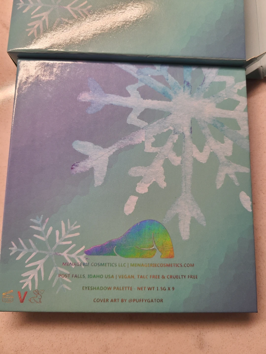 Menagerie Cosmetics Polar Lights eyeshadow palette. It features nine shades of eyeshadow. It's vegan and cruelty-free.