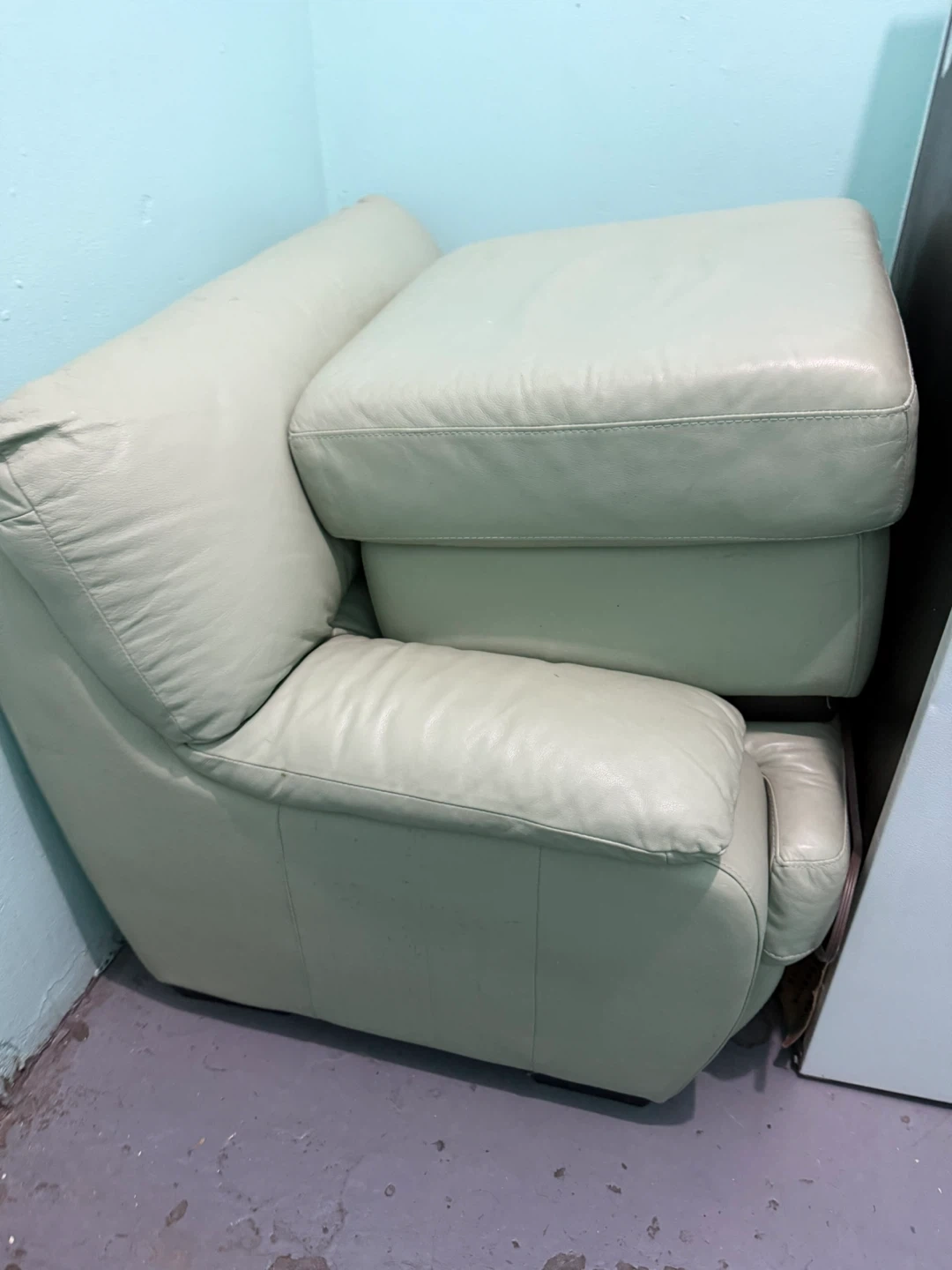 Pale Green Leather Armchair with Ottoman
