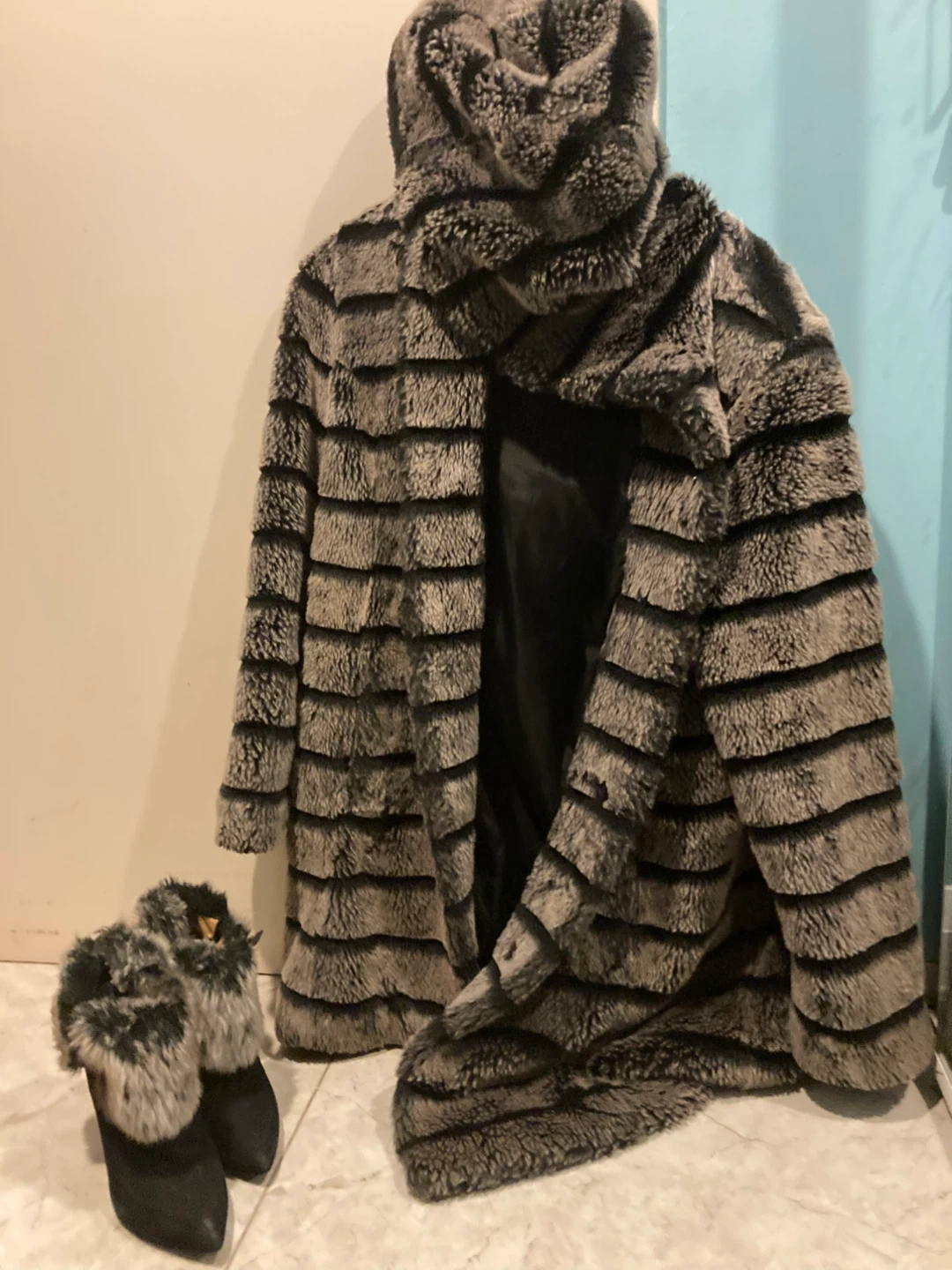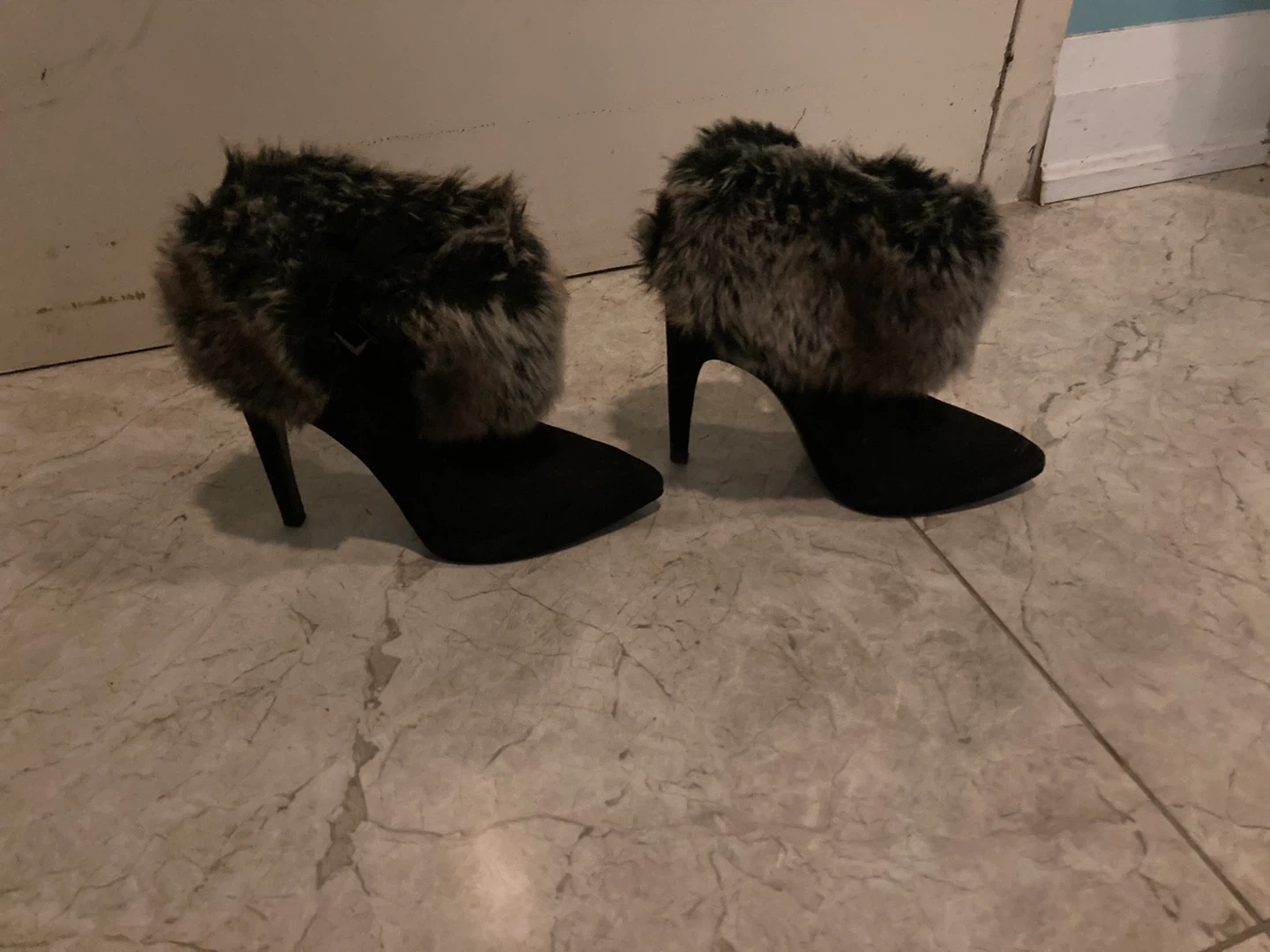 Black fur coat and shoes combo ππ₯
