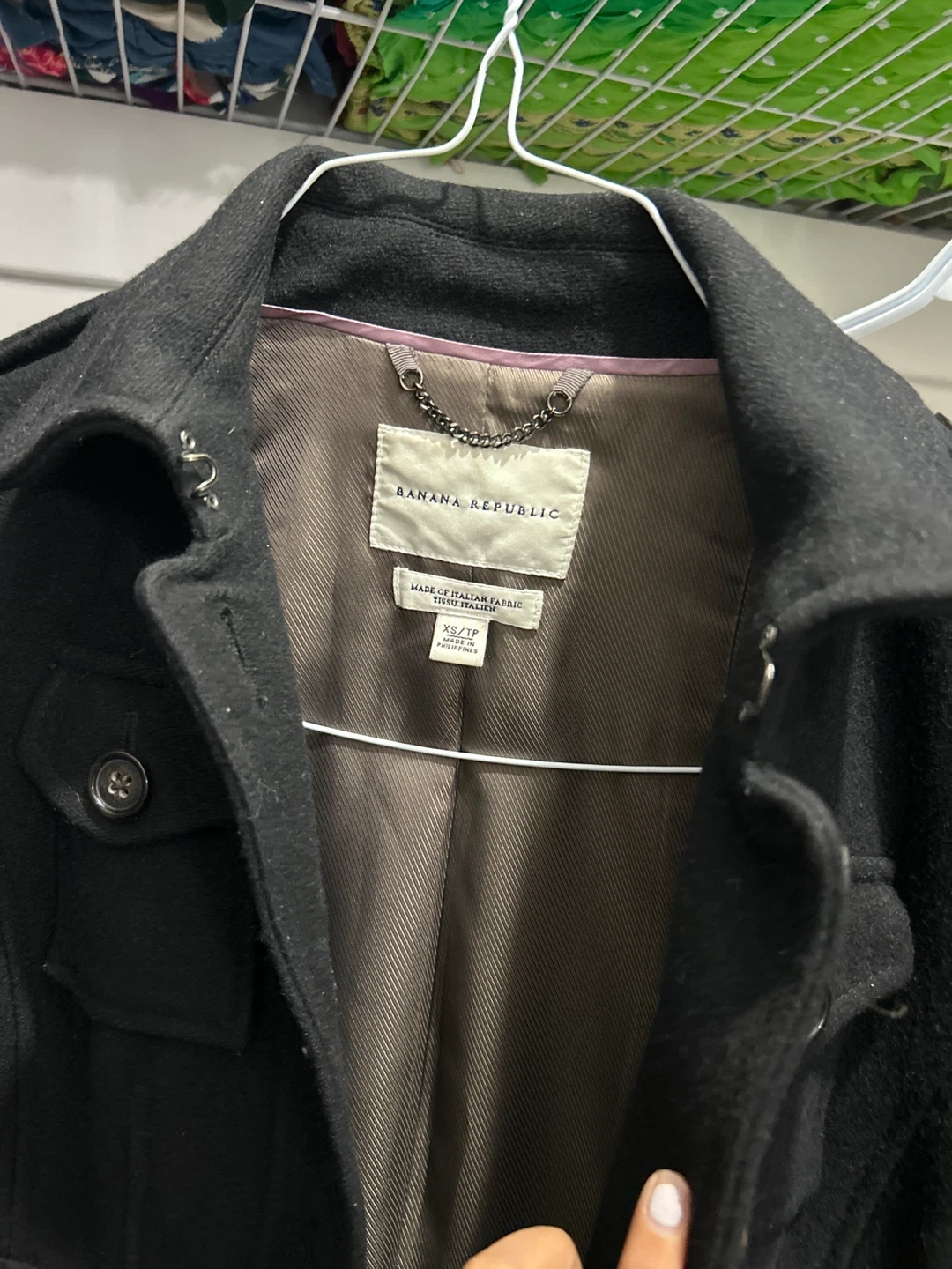 Cozy black wool coat from Banana Republic, perfect for chilly days! It's a size XS/TP. The material is made of Italian fabric.