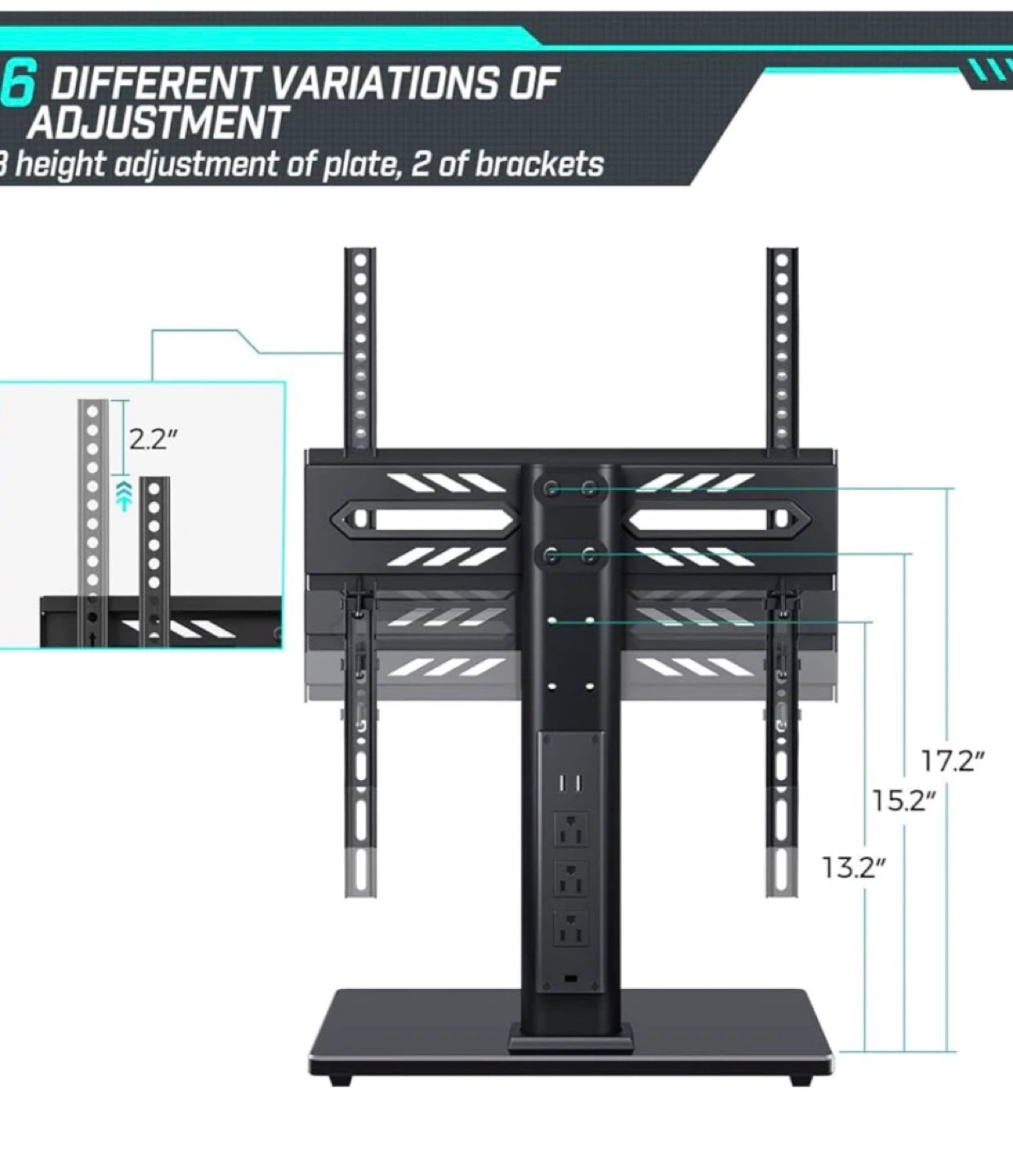 Greenstell TV Stand with Power Outlet, Universal TV Mount Stand for 27-60 inch TVs,Height Adjustable, Swivel Table Top TV Stand with Tempered Glass Base, Holds up to 88 LBs, Max VESA 400x400mm,Black