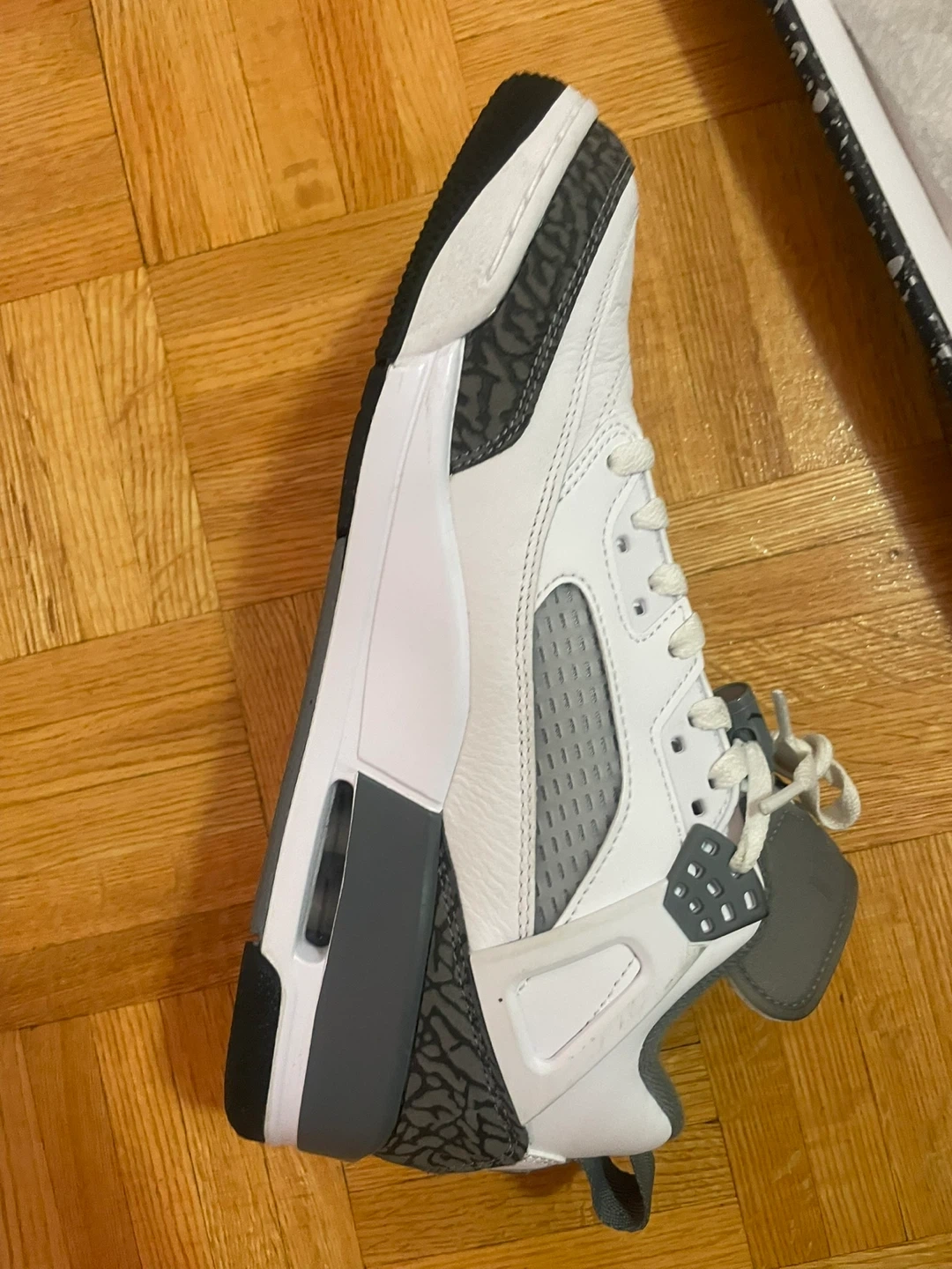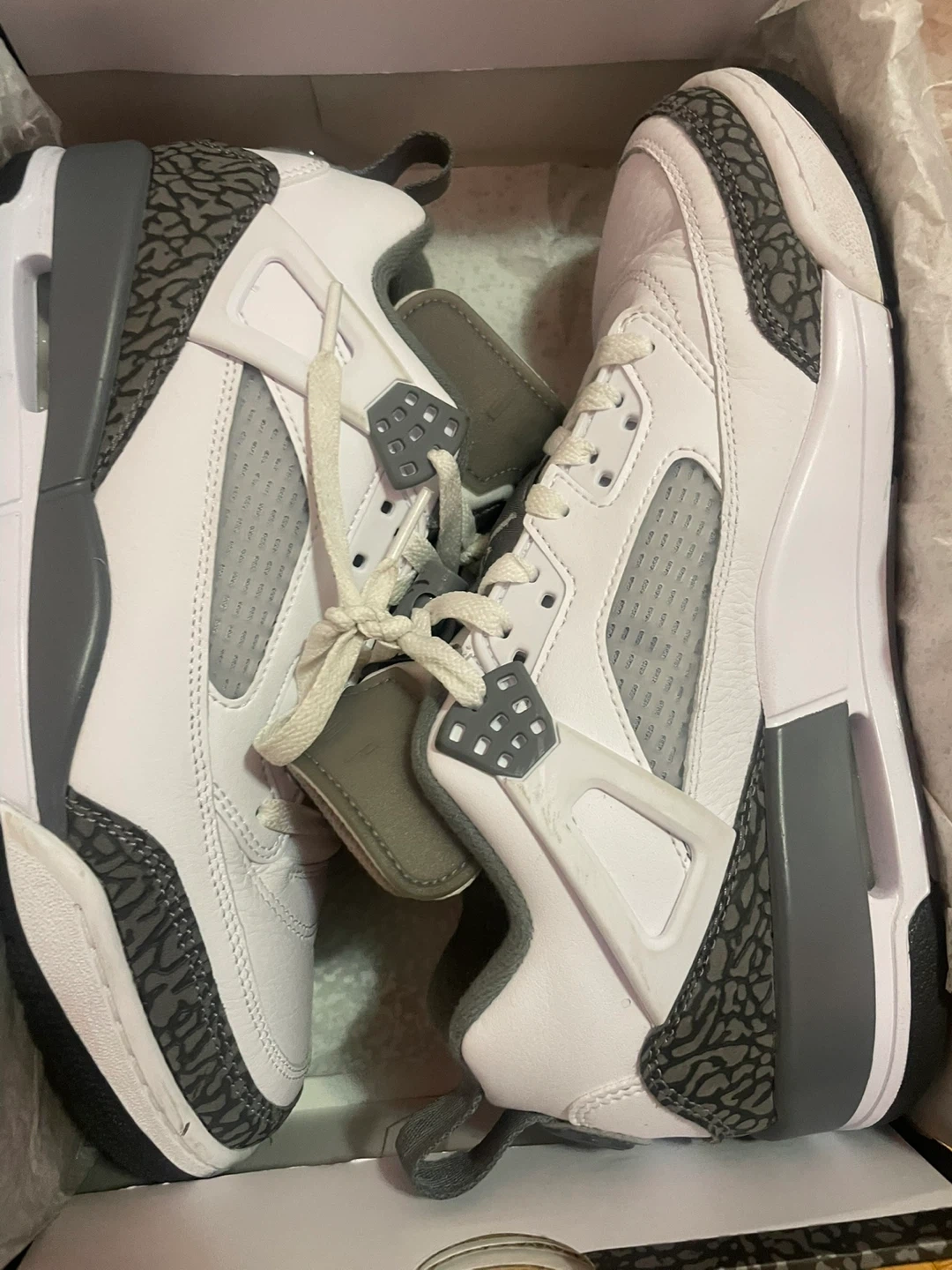 Selling a pair of Air Jordan spizike. These shoes are in great condition and come with the original box! They feature the classic white, grey, and black colourway