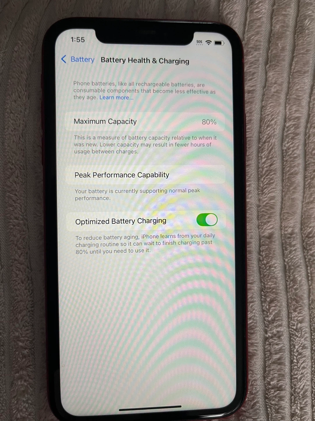 • Battery health: 80% (Normal peak performance)