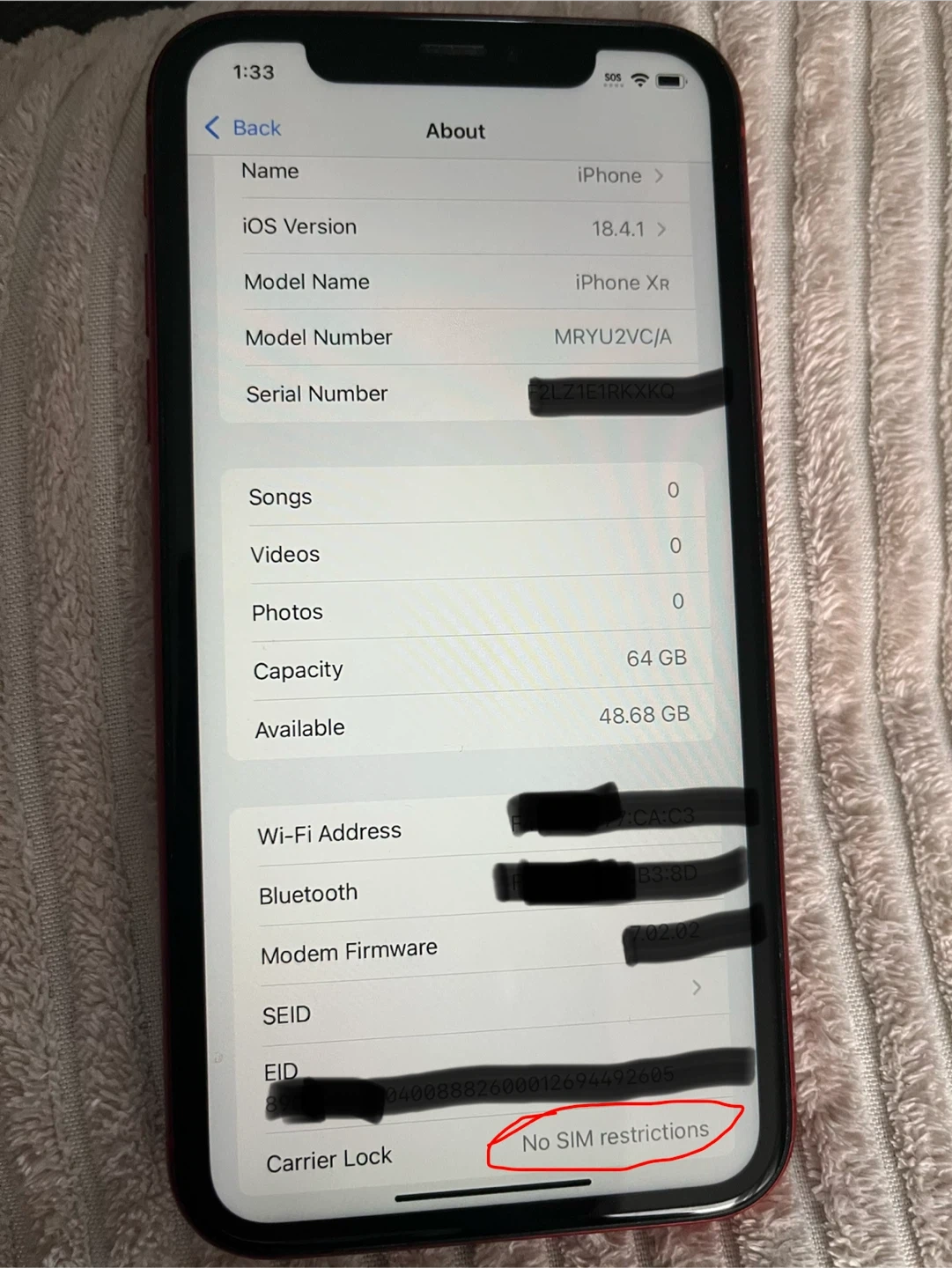 Selling an iPhone XR 64GB Red.