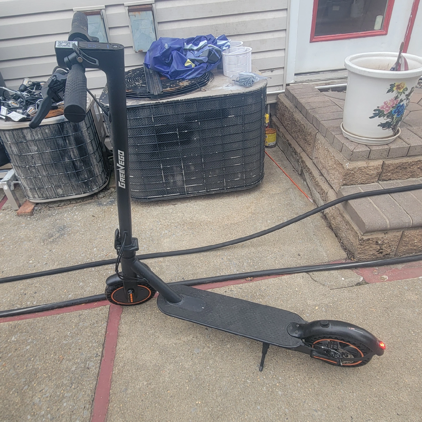 5Selling a GreeVego electric scooter. It has a digital display that shows speed and battery level. Great for getting around town!