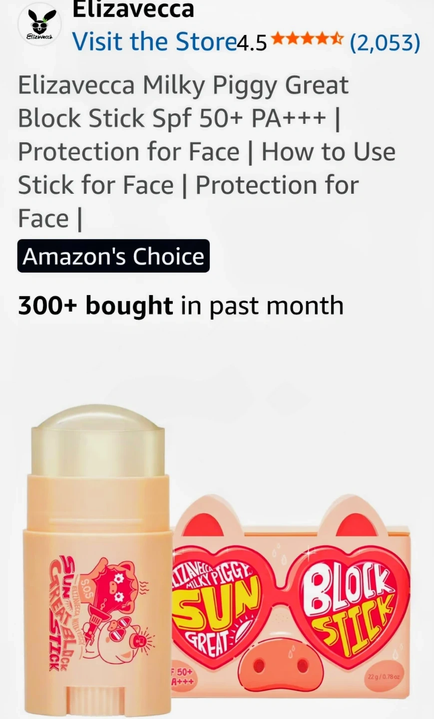 237I'm selling a *NEW* Elizavecca Milky Piggy Great Block Sun Stick SPF 50+ PA+++! It offers protection for your face from UVA and UVB rays. It's a convenient stick form for easy application and is great for on-the-go use
