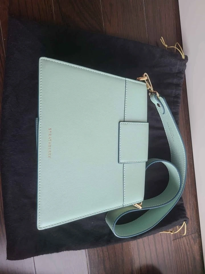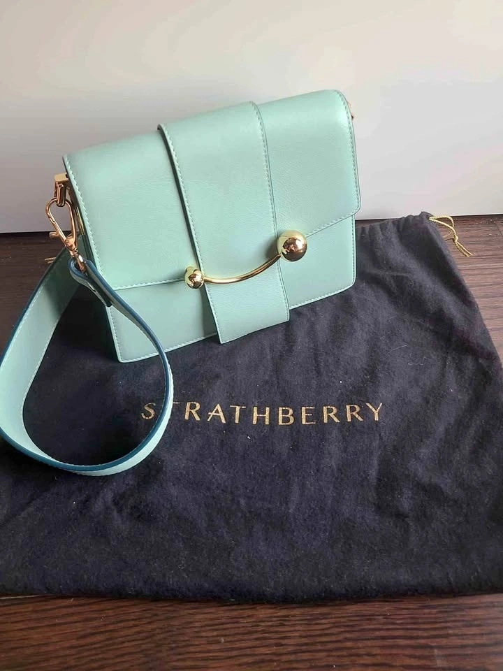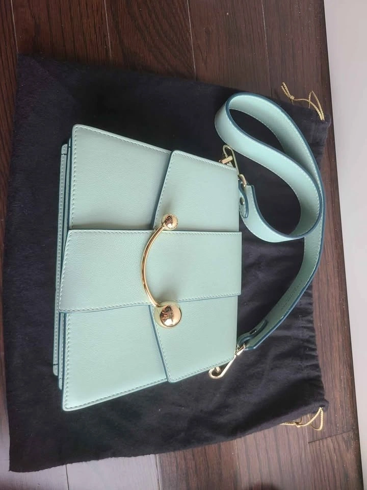 Authentic Strathberry Crescent bag in blue. I bought it from Lane Crawford (Holt Renfrew equivalent in Hong Kong). It's been sitting here for a while. I just don't really use this one as much therefore letting it go. I have the metal chain as well. Pick up near Erin mills and Burnhamthorpe.