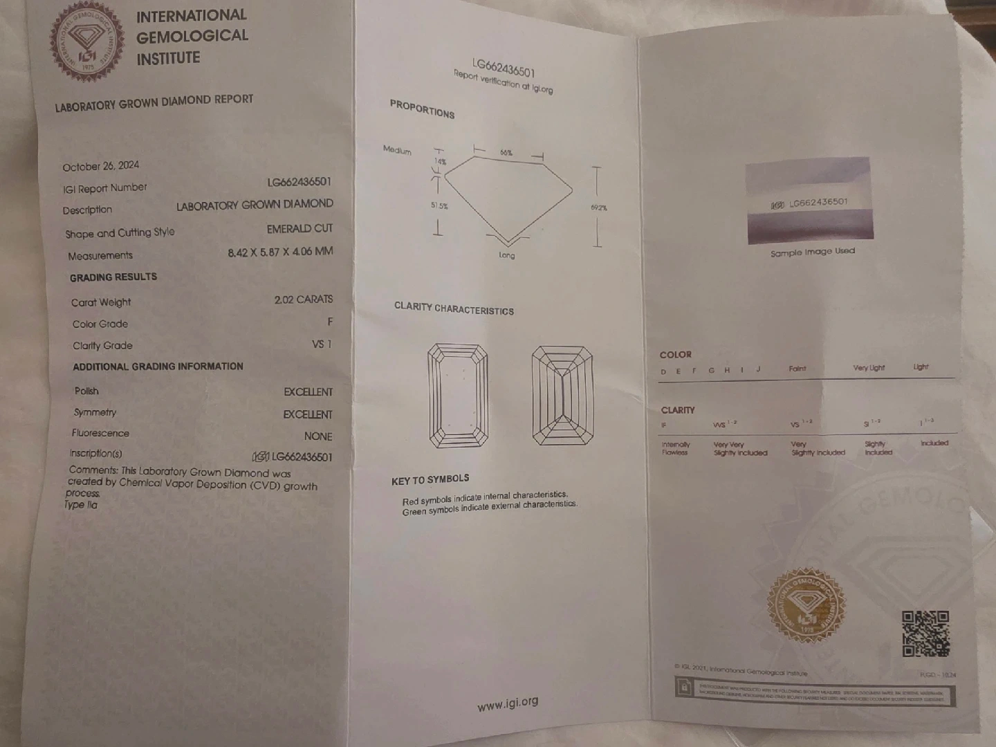 60Selling a beautiful emerald cut 2.02 carat diamond engagement ring. VS1 and F color. with certificate.