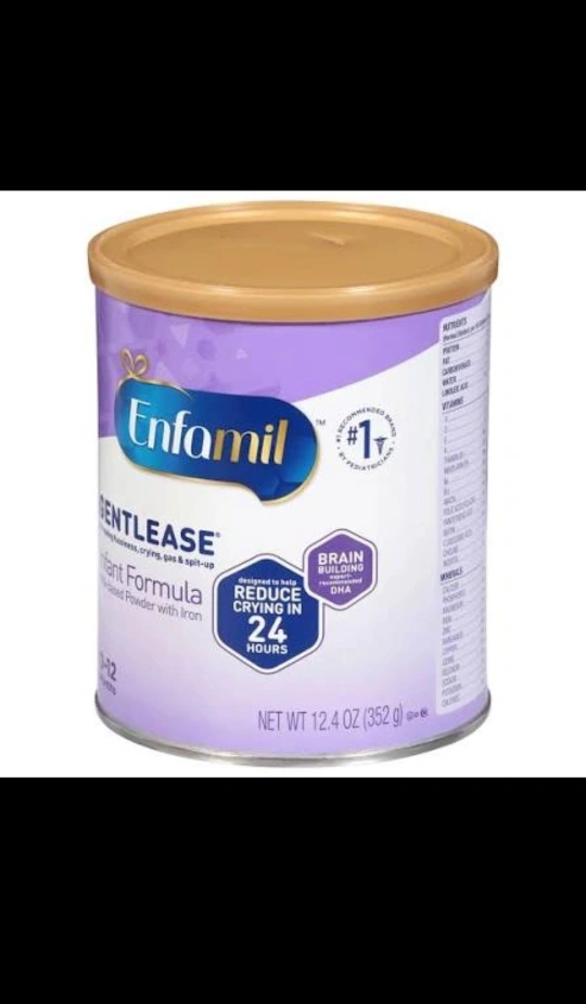 Selling a can of Enfamil Gentlease infant formula. It's designed to help reduce crying in 24 hours and has brain-building DHA. Net weight is 12.4 oz (352 g)