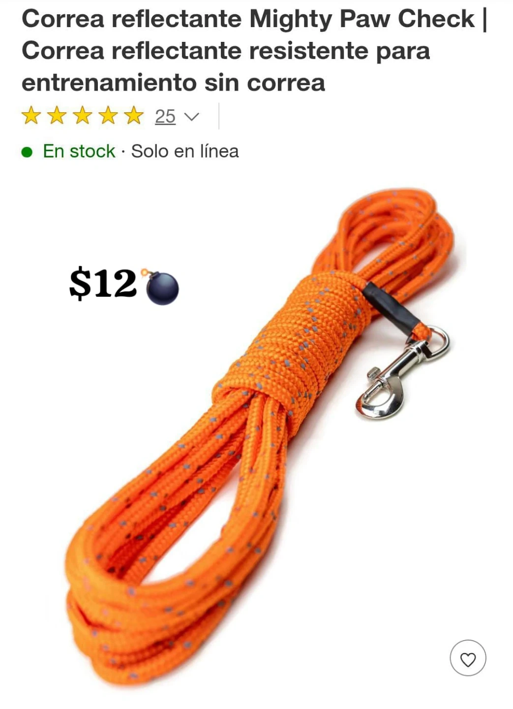 Selling a Mighty Paw Check reflective dog leash. It's an orange leash designed for dog training. The leash is durable and reflective, making it great for walks!