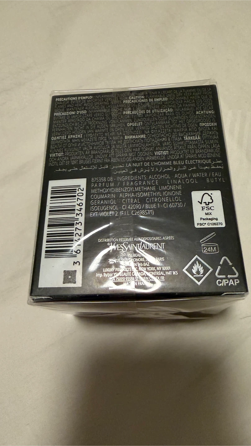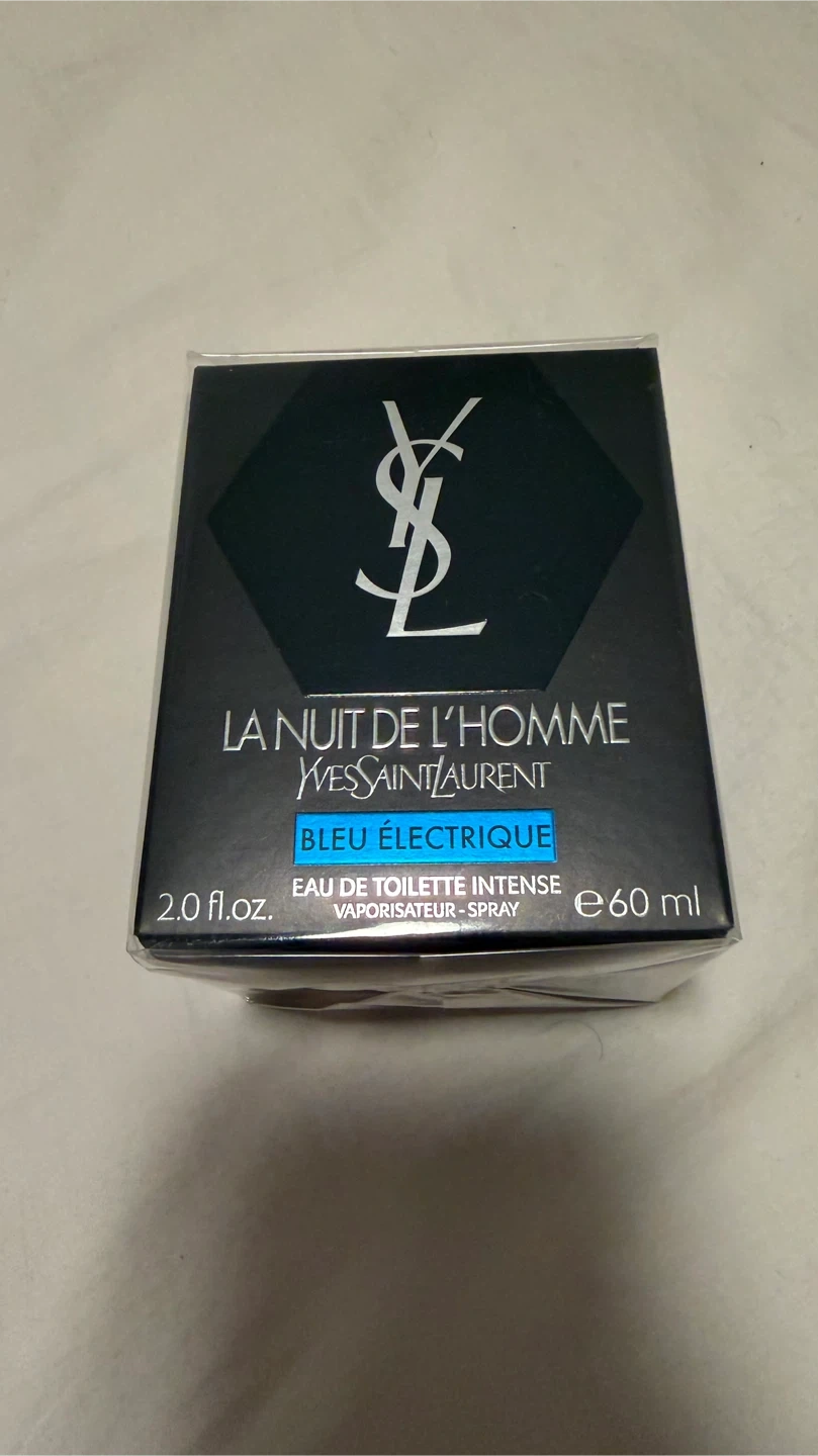 This is Yves Saint Laurent La Nuit de L'Homme Bleu Électrique Eau de Toilette Intense. It comes in a 60 ml (2.0 fl.oz) spray bottle. This fragrance features notes of bergamot, cardamom, and lavender.