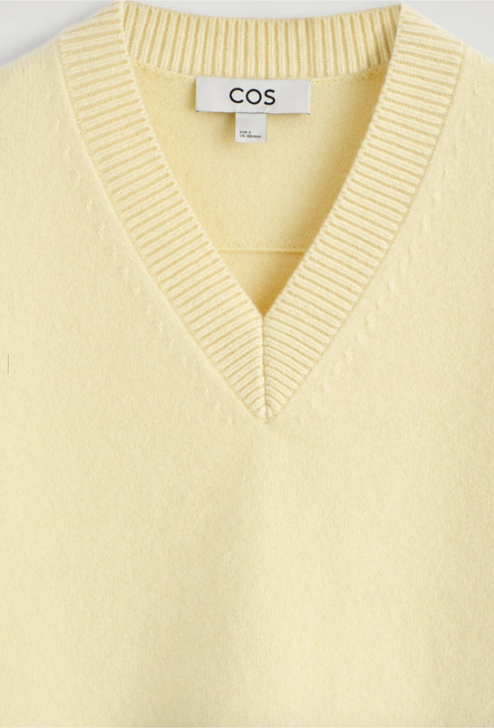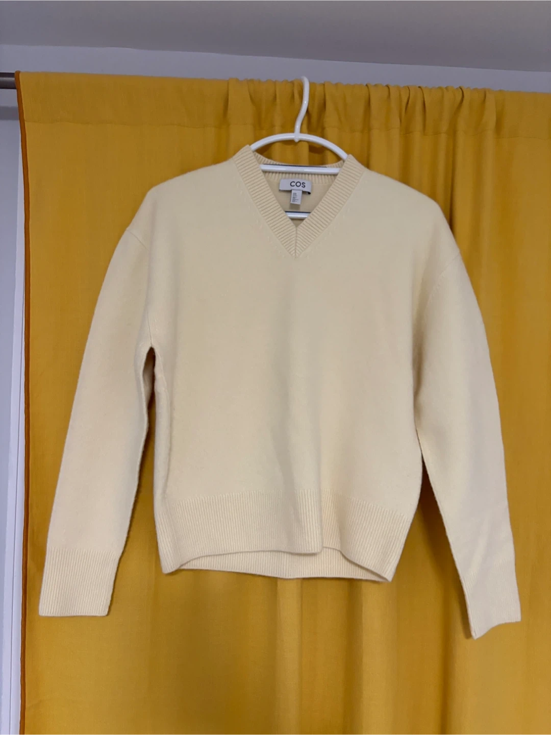 Buy & SellCOS wool V-Neck SweaterCOS wool V-Neck Sweater$40COS wool V-neck sweater in a soft butter yellow color. Size is XS. It’s in new condition, never worn! Original price is $139.ConditionNewSizeXSBrandCOSWHERE TO MEETProspect Park southView MapSELLERverifiedJeniceProspect Park600 reviews0 chats·1 favorites·11 viewsSEND CHAT TO SELLERHi Jenice! I’m interested in your listing.Hi Jenice! I’m interested in your listing.Get the Karrot app to chatSign In to chat