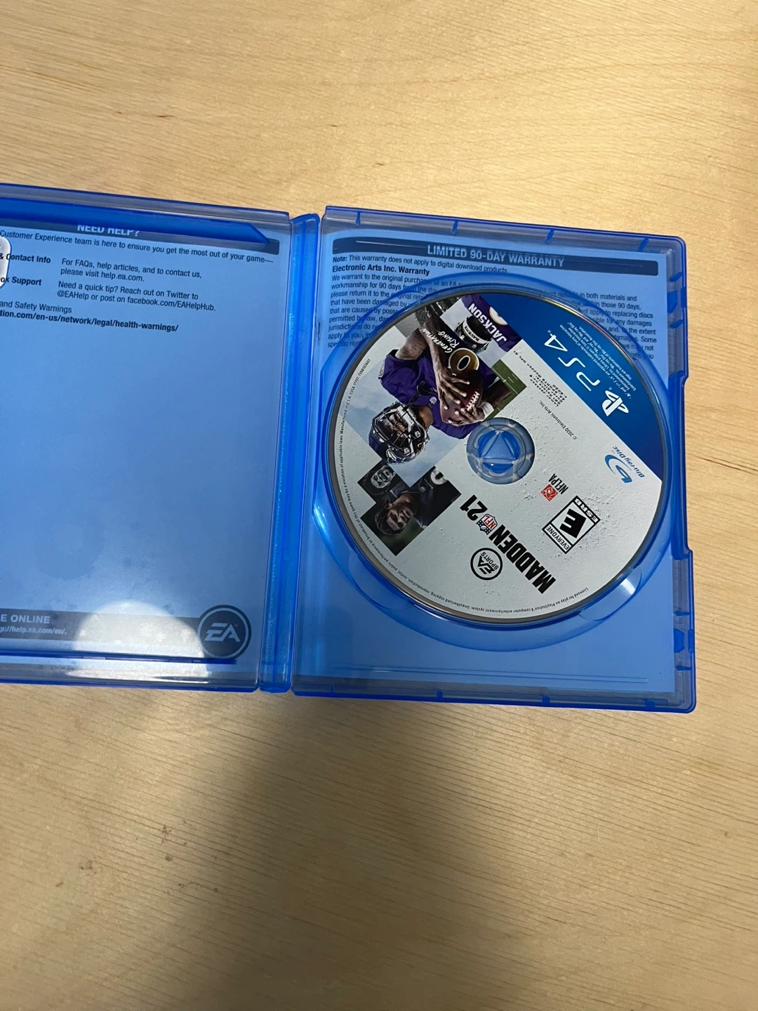 This is the Madden NFL 21 video game for PlayStation 4. It includes the game disc and case. The game is rated E for Everyone.