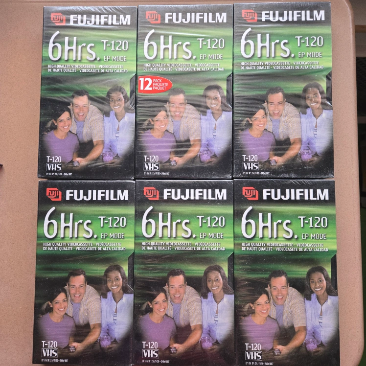 Lot of six FujiFilm VHS tapes. Each tape is 6 hours, T-120, EP mode. High quality videocassettes.