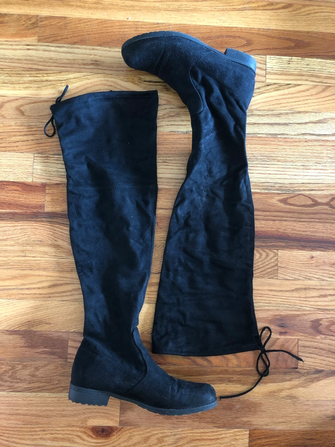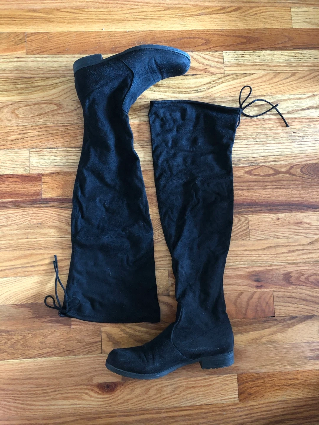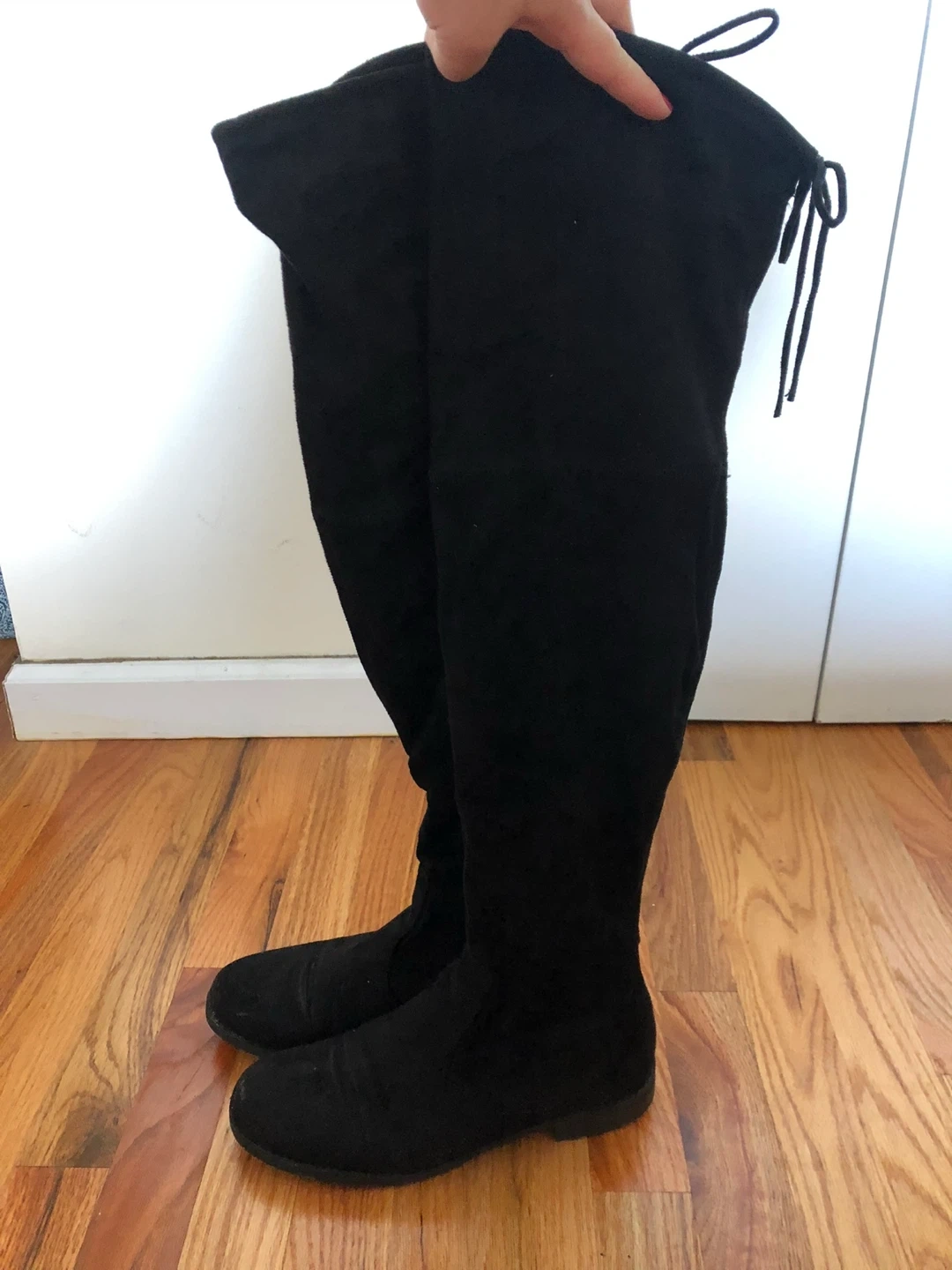 Selling a pair of UNISA over-the-knee boots in black. They are a size 8M and have a textile upper. These boots are stylish and perfect for fall or winter!