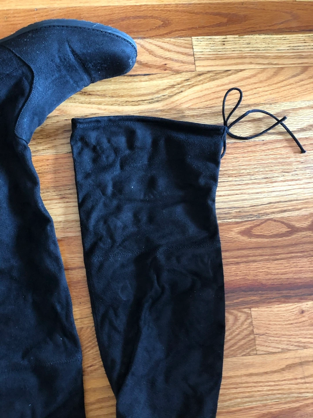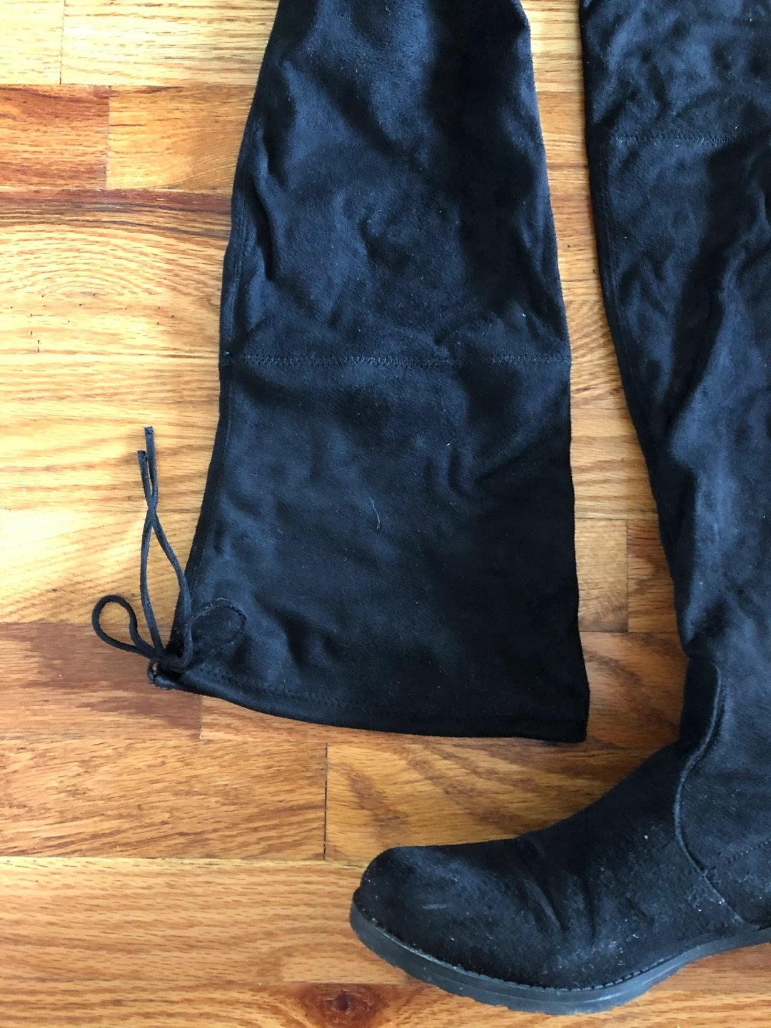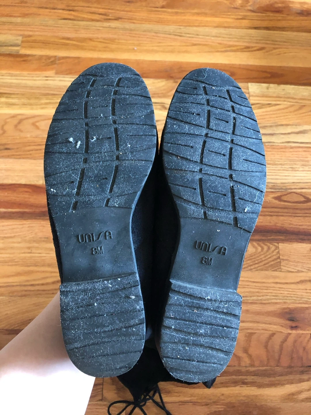Selling a pair of UNISA over-the-knee boots in black. They are a size 8M and have a textile upper. These boots are stylish and perfect for fall or winter!