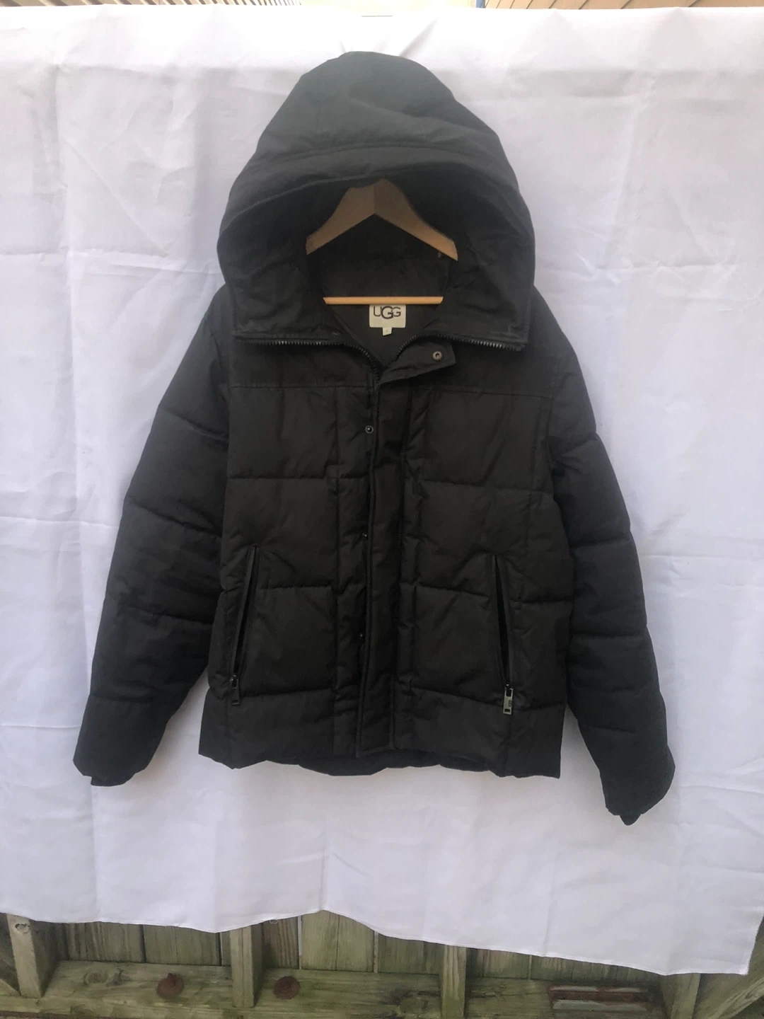 Selling a black UGG puffer jacket With hood , in size L. It's in great condition and perfect for staying warm during the colder months!