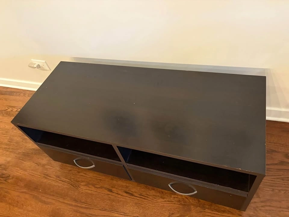 Great, durable TV stand/entertainment center. Very minor wear and tear around edges.