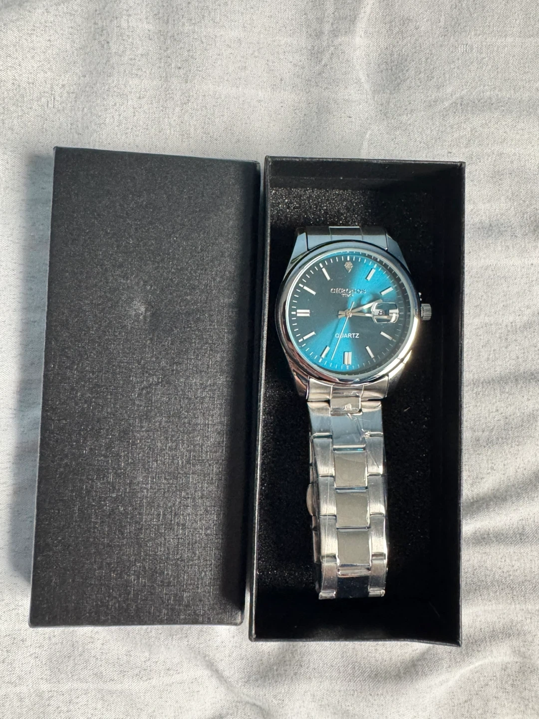 Blue Dial Silver Men’s Watch – New in Box | Clean Dress Watch