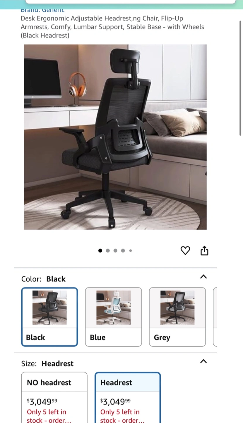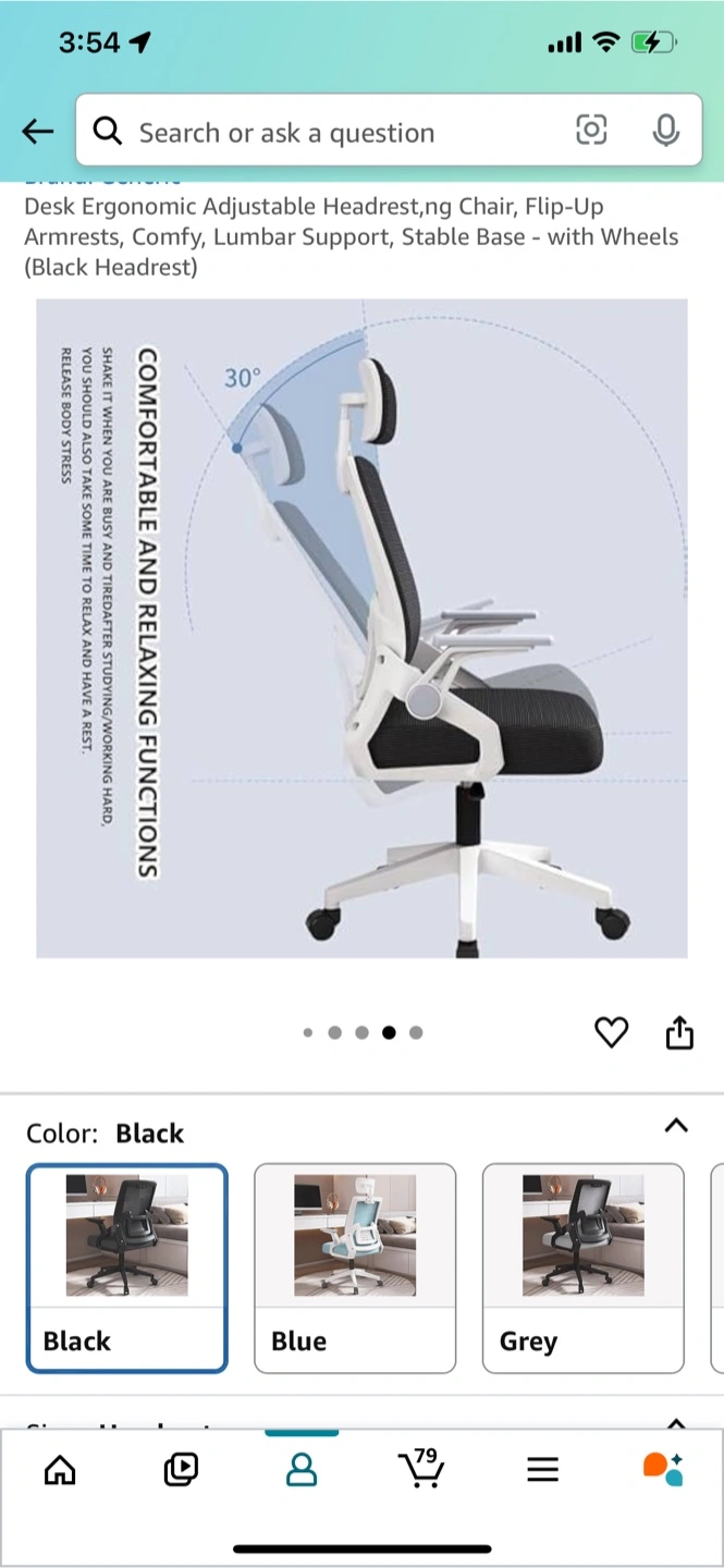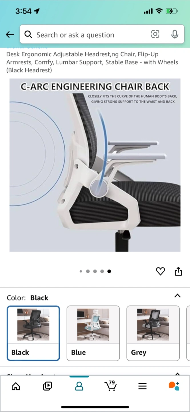 165Ergonomic adjustable headrest chair in black. It features flip-up armrests, comfy lumbar support, and a stable base with wheels. The chair back is designed with C-ARC engineering to closely fit the curve of your back, giving strong support to the waist and back for a comfortable and relaxing experience while you're busy or studying/working hard Ergonomic Adjustable Headrest,ng Chair, Flip-Up Armrests, Comfy, Lumbar Support, Stable Base *Door pickup only — 4th fl walk-up, no elevator. Please bring help or do a quick double park if needed. Thank you.