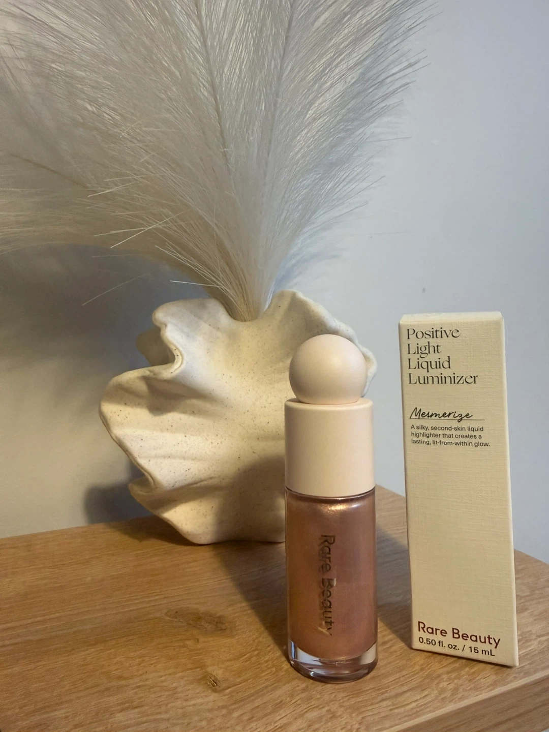 Rare Beauty Positive Light Liquid Luminizer in shade "Mesmerize". It's a silky, second-skin liquid highlighter that creates a lasting, lit-from-within glow. 15 mL / 0.50 fl. oz. size.
