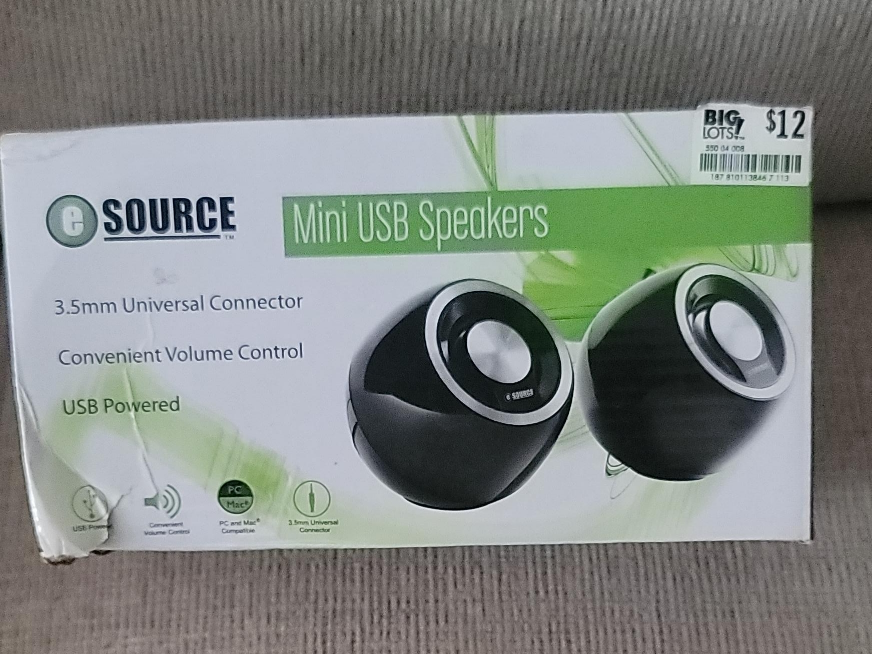 60Selling a set of eSource Mini USB Speakers! They feature a 3.5mm universal connector and convenient volume control. They're USB powered and compatible with PC and Mac. Originally bought for $12
