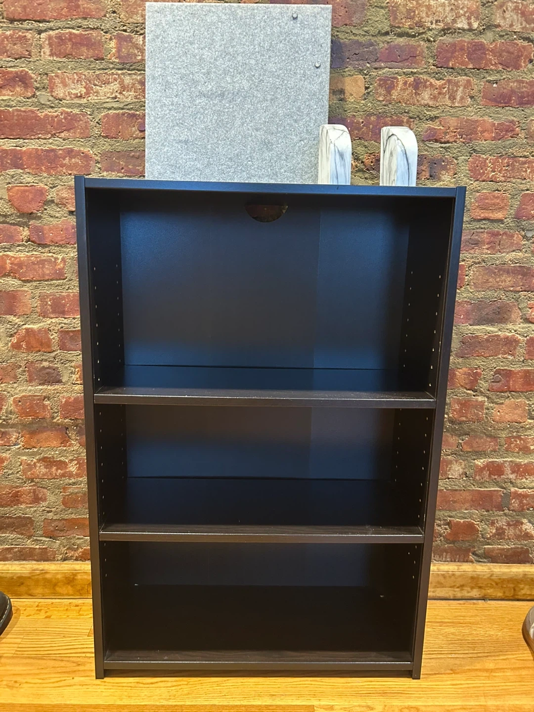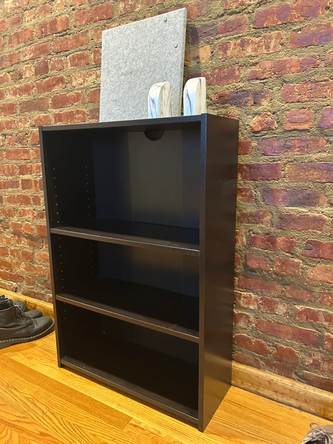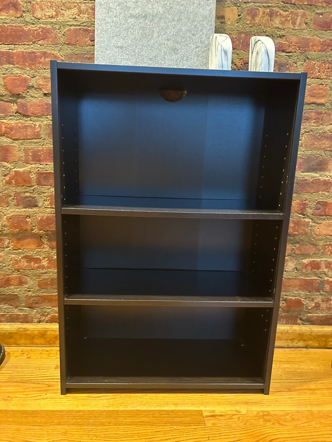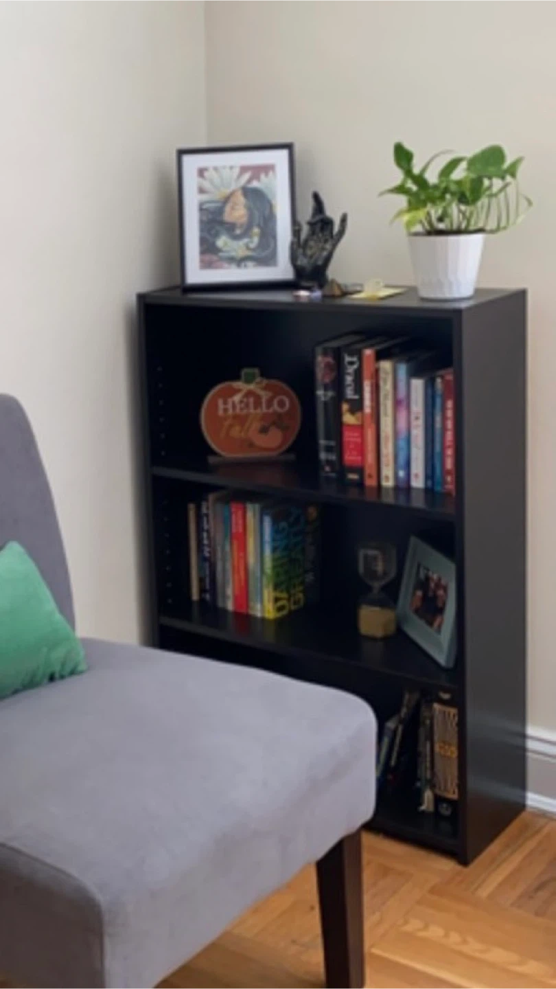 Selling a black bookshelf in great condition. It features three shelves and is perfect for storing books, displaying decorations, or organizing items. It's a simple and functional piece that can fit well in any room!