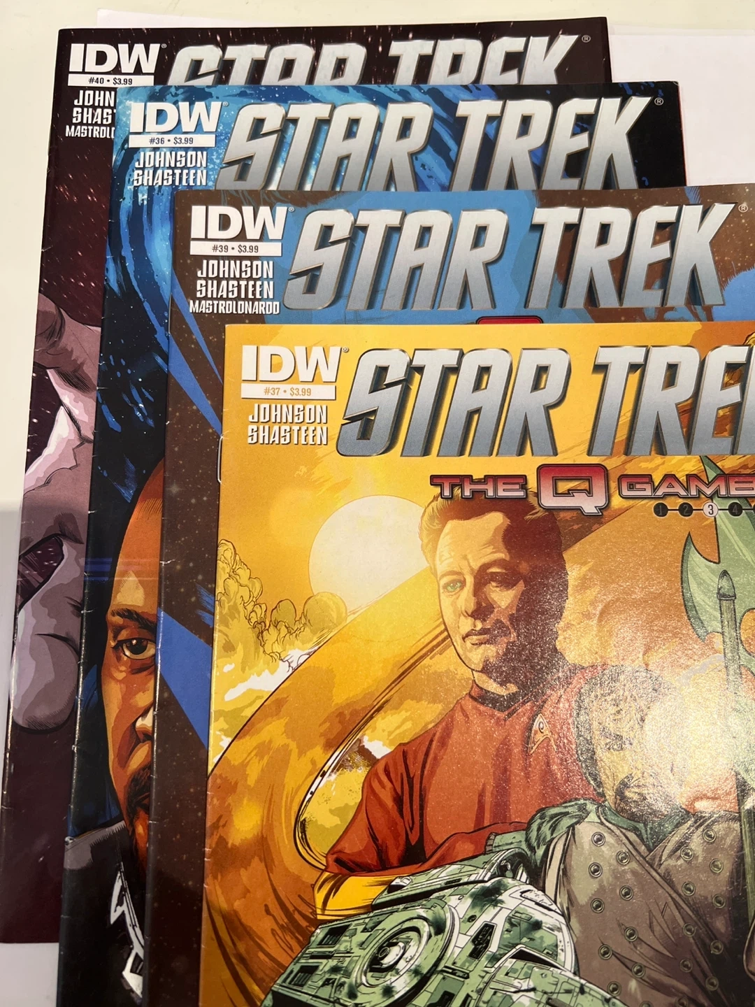 Selling a set of Star Trek: The Q Gambit comic books! These are from IDW Publishing, featuring stories by Johnson and Shasteen. Great for any Star Trek fan or comic book collector