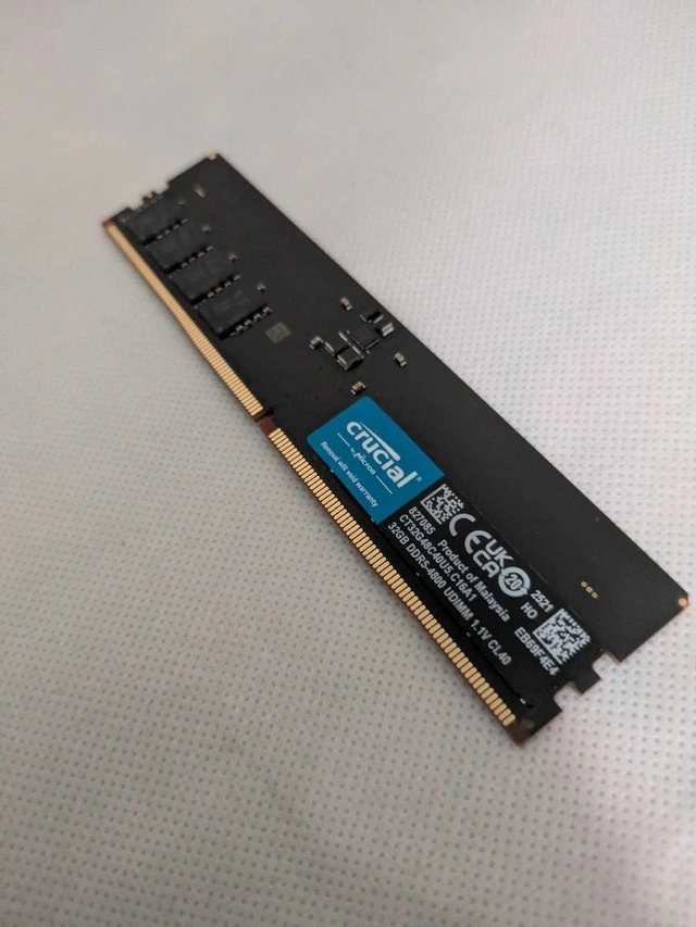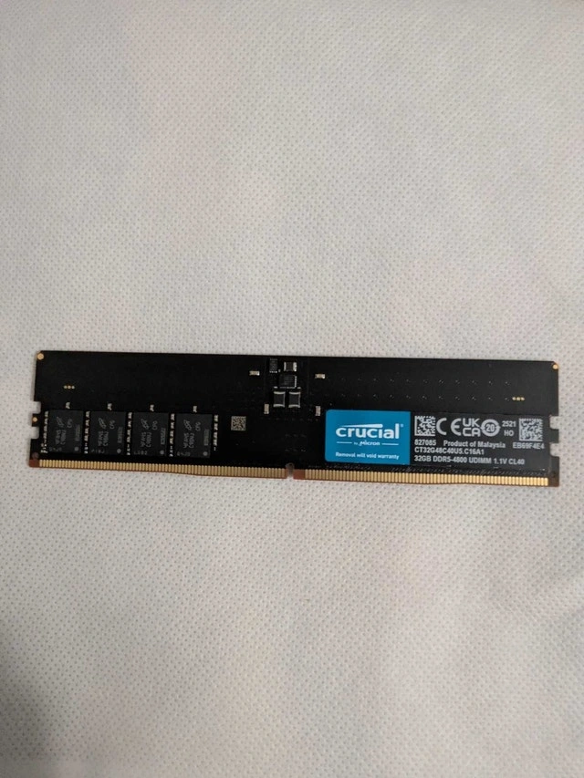 Selling a Crucial 32GB DDR5 UDIMM in excellent condition. Specs: Brand: Crucial, Capacity: 32GB, Type: DDR5 UDIMM, Speed: 4500MHz, Voltage: 1.1V, Latency: CL40, Model: CT320-48C40US.C16A1. Product of Malaysia. Perfect for newer DDR5 desktop motherboards. Fully working, no issues. Price: $275. Pickup location: 2650 Lawrence Ave E, Scarborough, ON (Midland & Lawrence area)