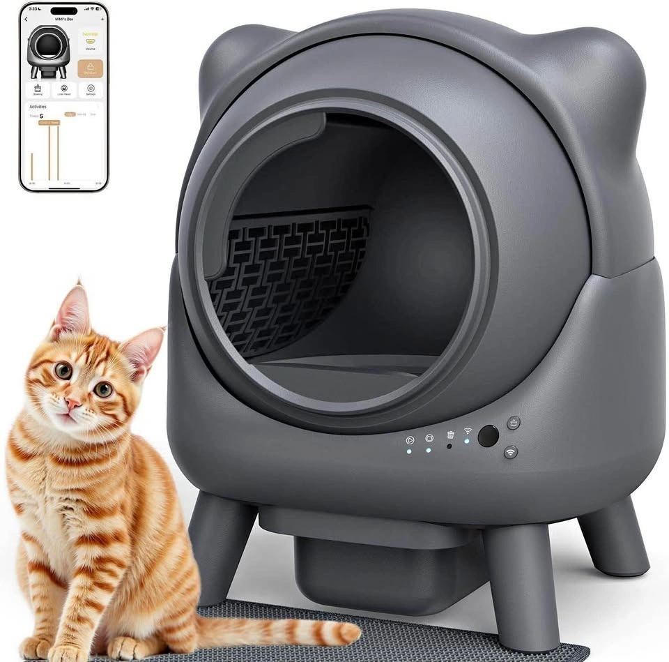 Say goodbye to daily hand scooping! Our self-cleaning litter box activates within 2 minutes after your cat exits, separates waste, and deposits it into a trash bin. Compatible with clumping litter, bentonite litter, mineral litter, and tofu litter. Enjoy a fresh home and zero scooping even with 10-14 days of extended use since an ample 11L trash bin. Our self cleaning litter box adopts a triple-layer defense system to keep your home consistently fresh and odor-free. The integrated ABS material prevents urine leaks and traps odors at the source. The 3-layer waterproof cat litter mat (non-stick design) resists waste buildup and odor absorption. The airtight waste storage (with silicone gasket) ensures smells stay sealed. Enjoy real odor-free living. Engineered for modern pet parents. We have designed an infrared sensor at the trash bin port. If your cat probes into the trash bin port during the cleaning cycle, the ball cabin will immediately stop rotating and return to the maximum opening state to prevent the cat from being trapped. If your cat enters the litter box, it instantly pauses cleaning because it senses the weight. This self cleaning litter box lets you track your cat's bathroom habits and litter use through the app. One-click cleaning can be performed through the APP. The built-in health monitor watches how often and when your cats go. This cat litter box supports 2.4G WiFi. When the trash can is full, the APP will remind you to change the trash bag in time. Pre-assembled design. Unbox, plug in, and pour litter (no tools required). To pour out the used cat litter, you need to tilt the litter box forward and pour the litter into the trash bin. Saves 80% of setup time. Lift the cat ears, the top-fill system lets you refill new litter via the wide opening. Please be advised that this litter box is not suitable for larger cat breeds such as Ragdolls or Maine Coons. Kindly confirm your cat's size compatibility before placing your order.