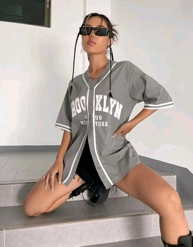 Brooklin grey Women Button-Down Baseball Shirt, Streetwear, Size