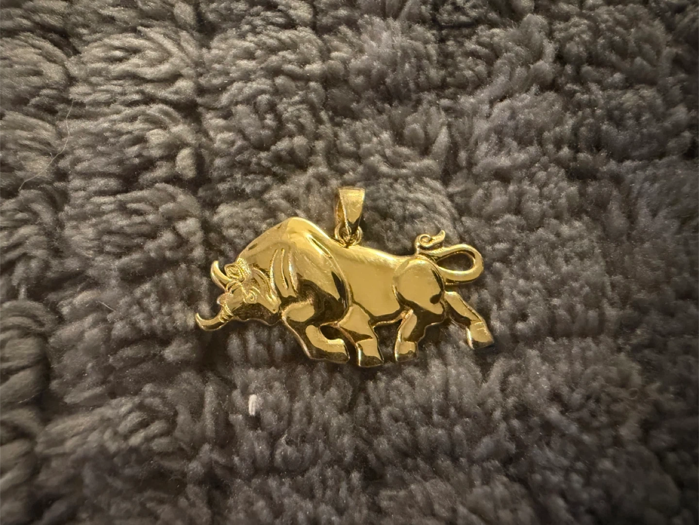 Selling a gold bull pendant. It's a unique piece that would make a great addition to any jewelry collection!