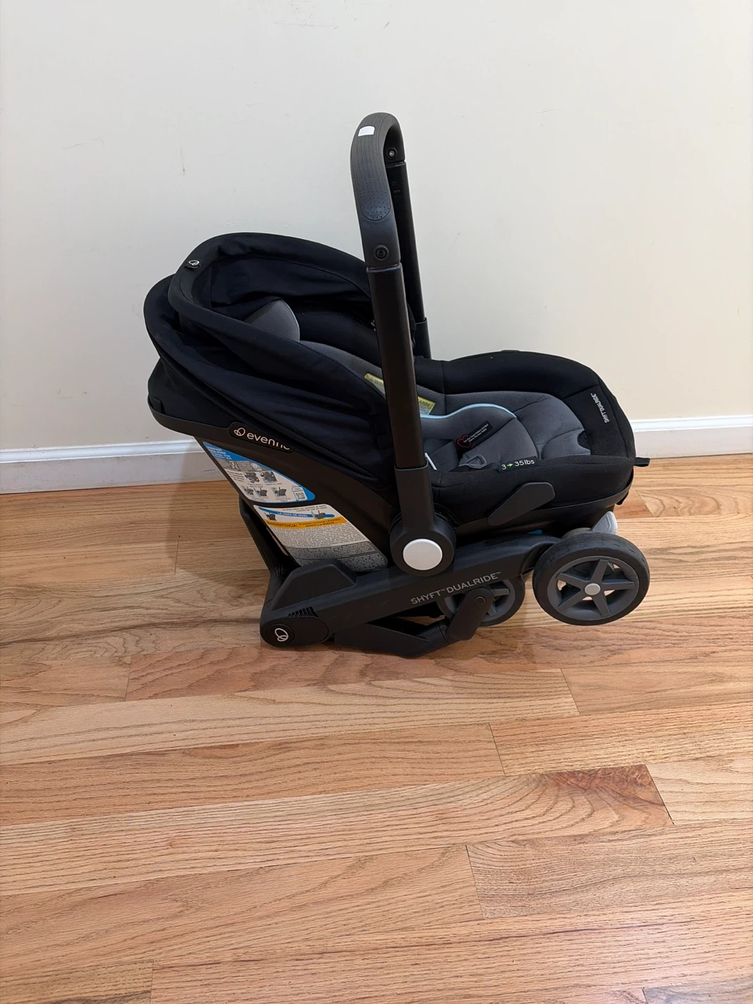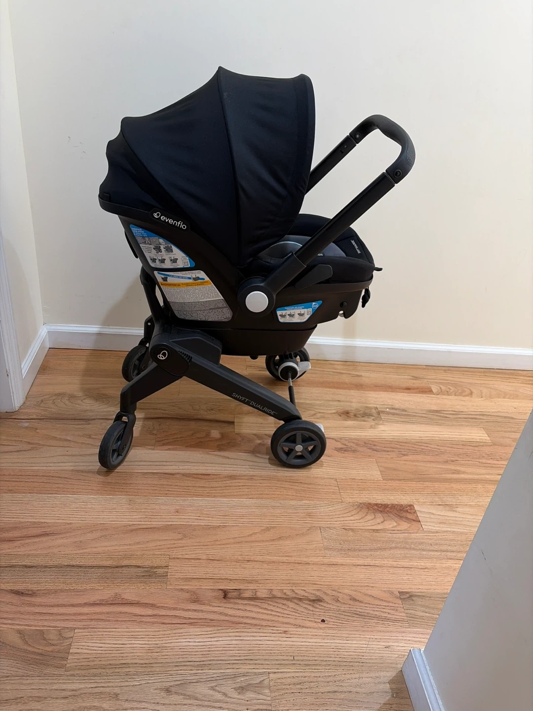 Selling an Evenflo Shyft DualRide infant car seat stroller. This versatile system allows you to easily transition from car to stroller. It's in great condition and ready for a new family!