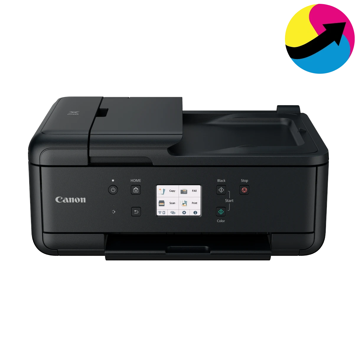 This Canon PIXMA TR7620 is an all-in-one printer, scanner, and copier. It's a black wireless inkjet printer with a compact design. Includes an auto document feeder for scanning and copying larger documents.