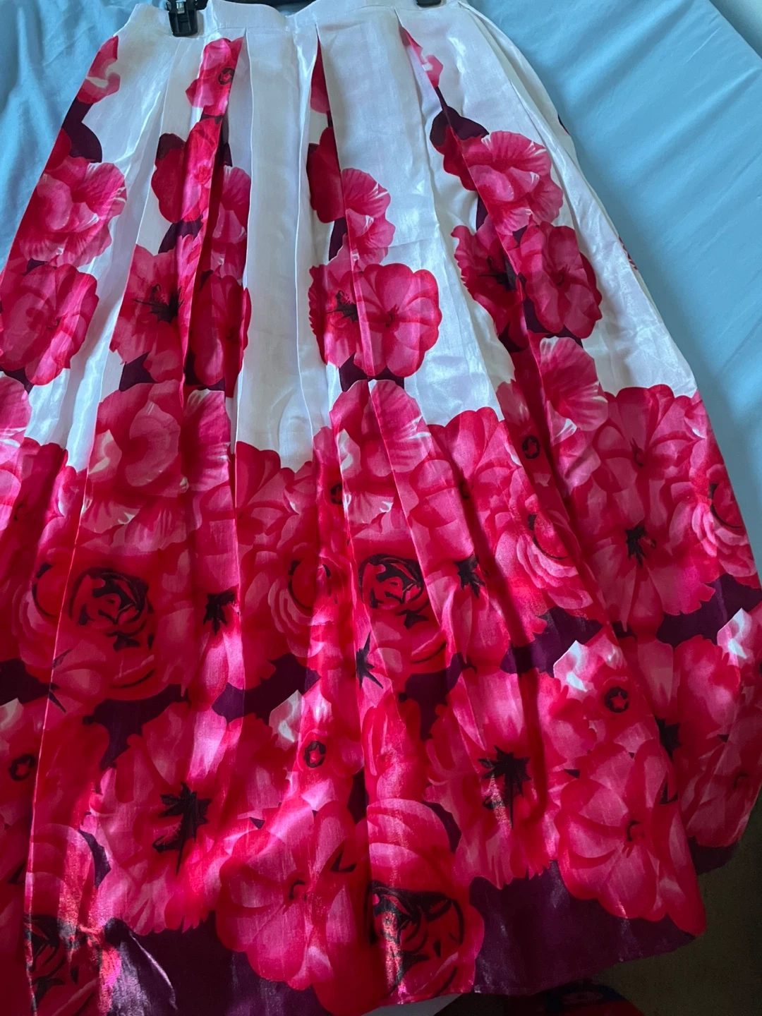 White and Pink Floral Pleated Skirt