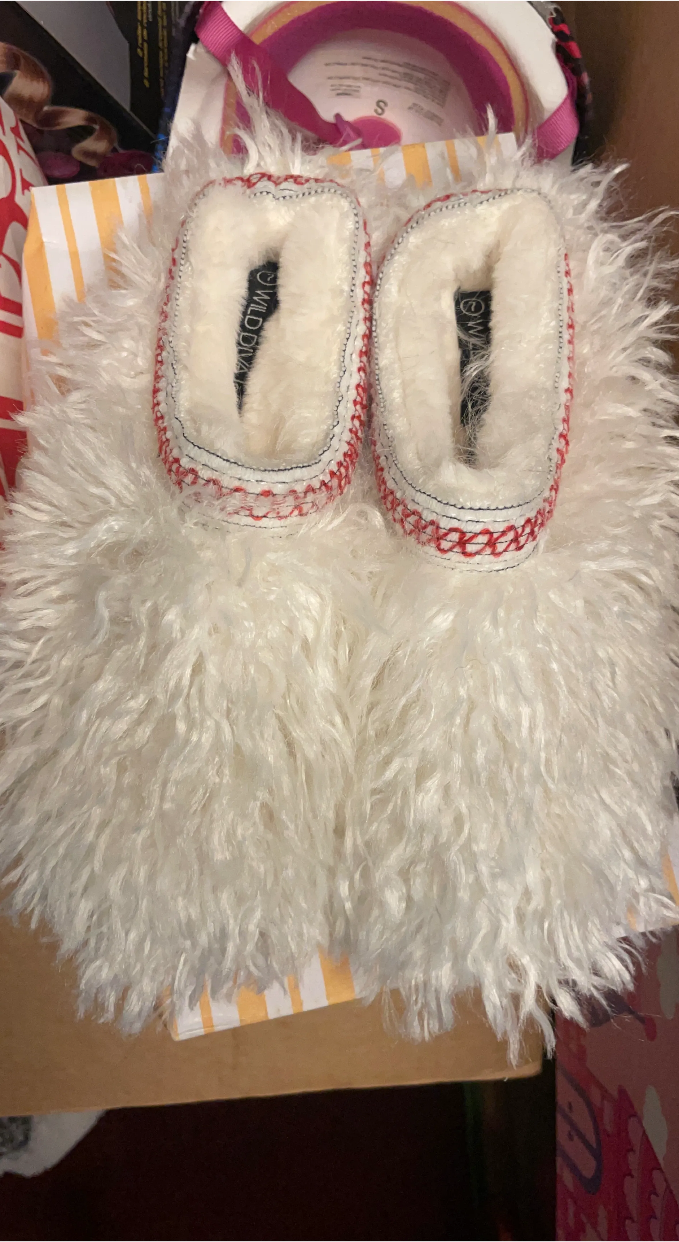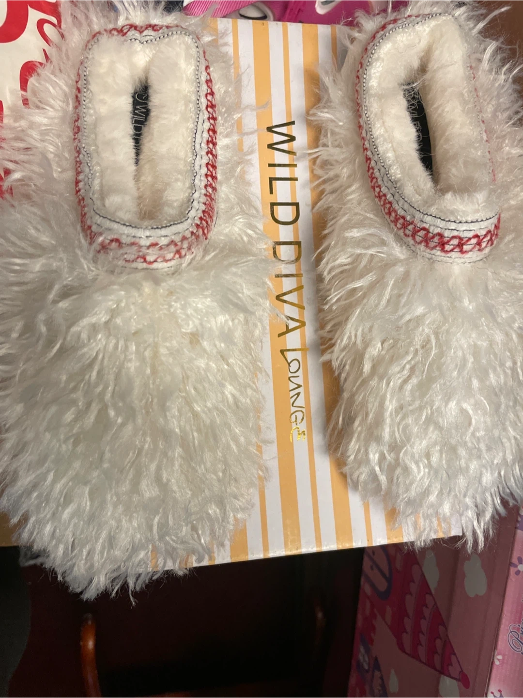 Cozy up in these fluffy white faux fur slippers from Wild Diva Lounge. They feature a plush interior for ultimate comfort. Perfect for lounging around the house!