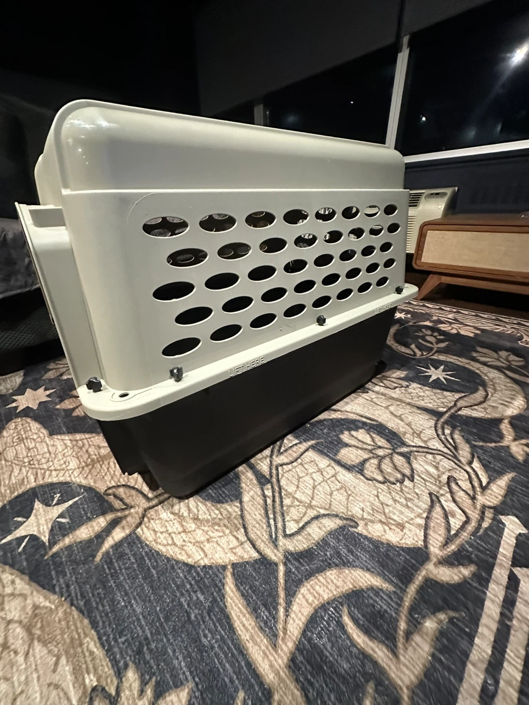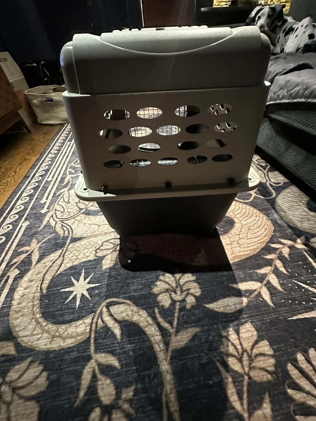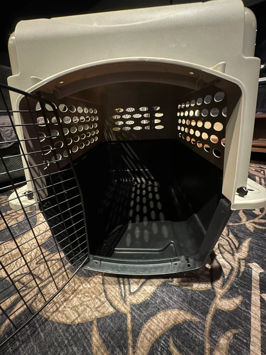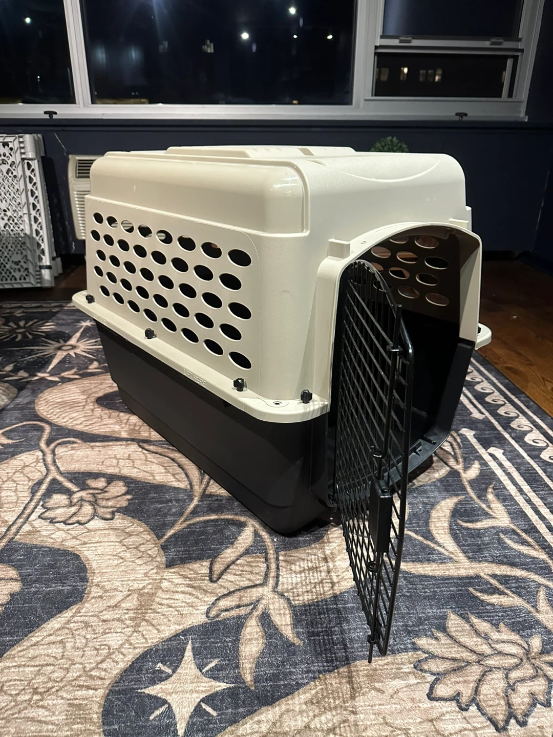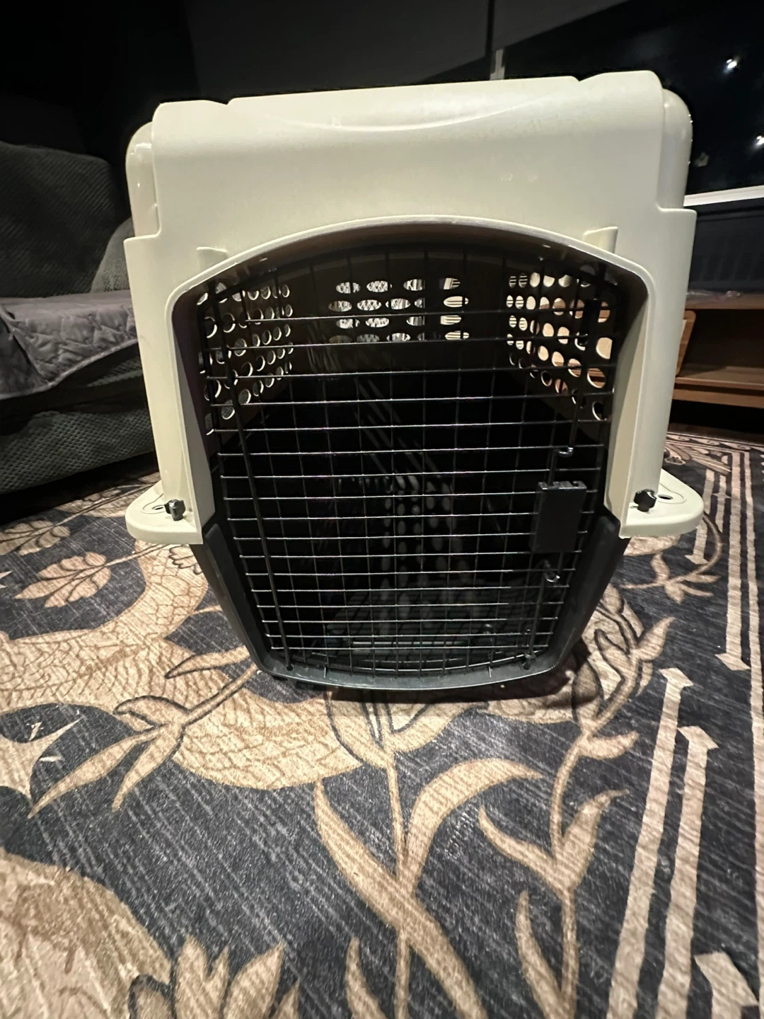 Almost brand new dog crate. Purchased November 2025, but only used a handful of times (my puppy is a Great Dane, and quickly outgrew it!).