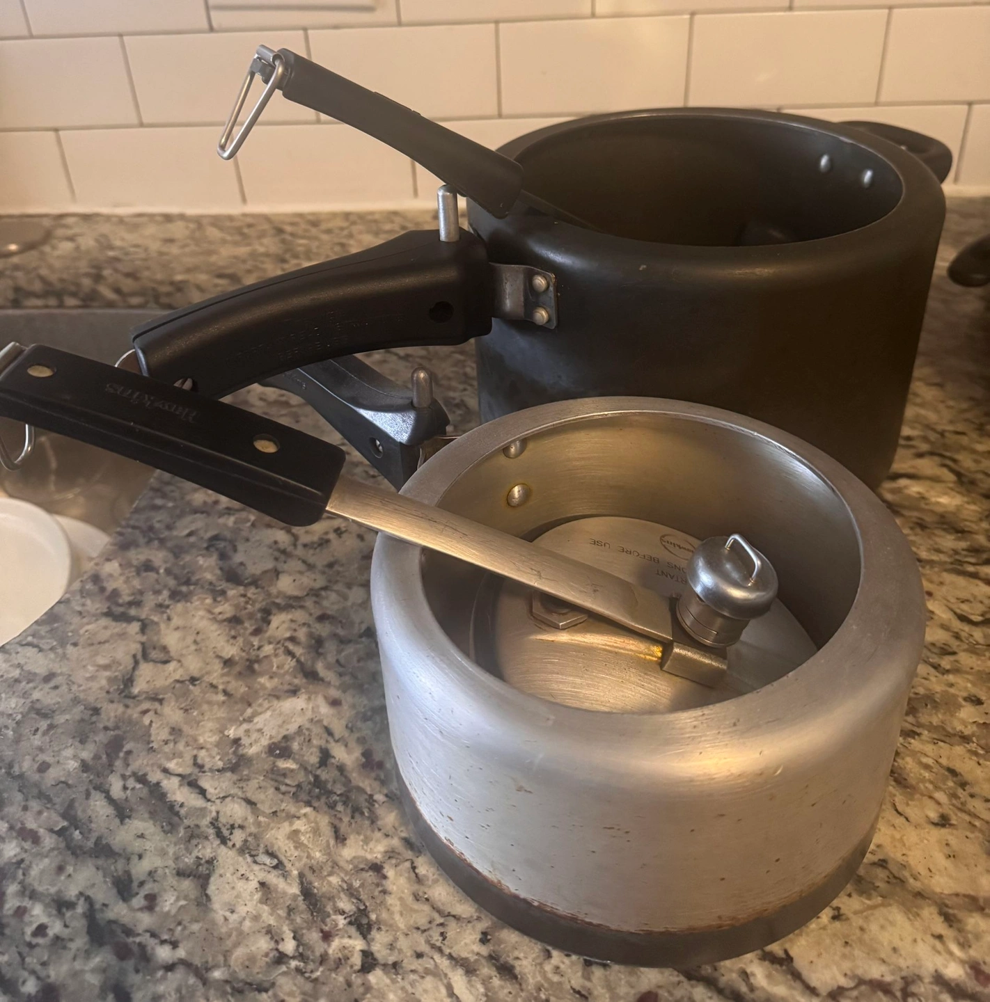 Pressure cooker with handles. 5L for $25, 2L for $15 is sold. Heavy thick bottom. Brands: Hawkins and Prestige. Feel free to message if you have any questions!