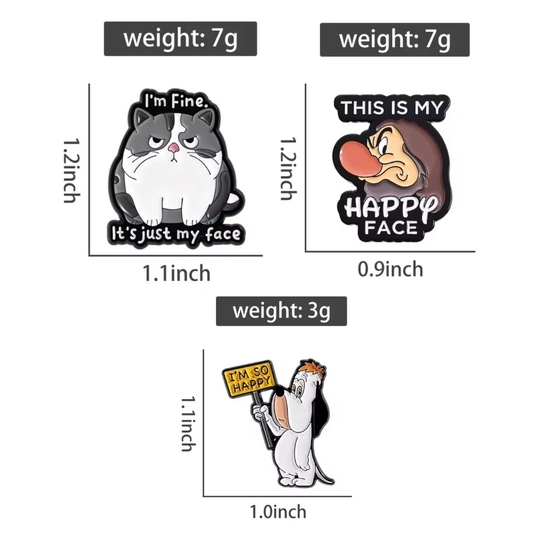 Happy Faces Set of 3 Brooch Enamel Lapel Pins.