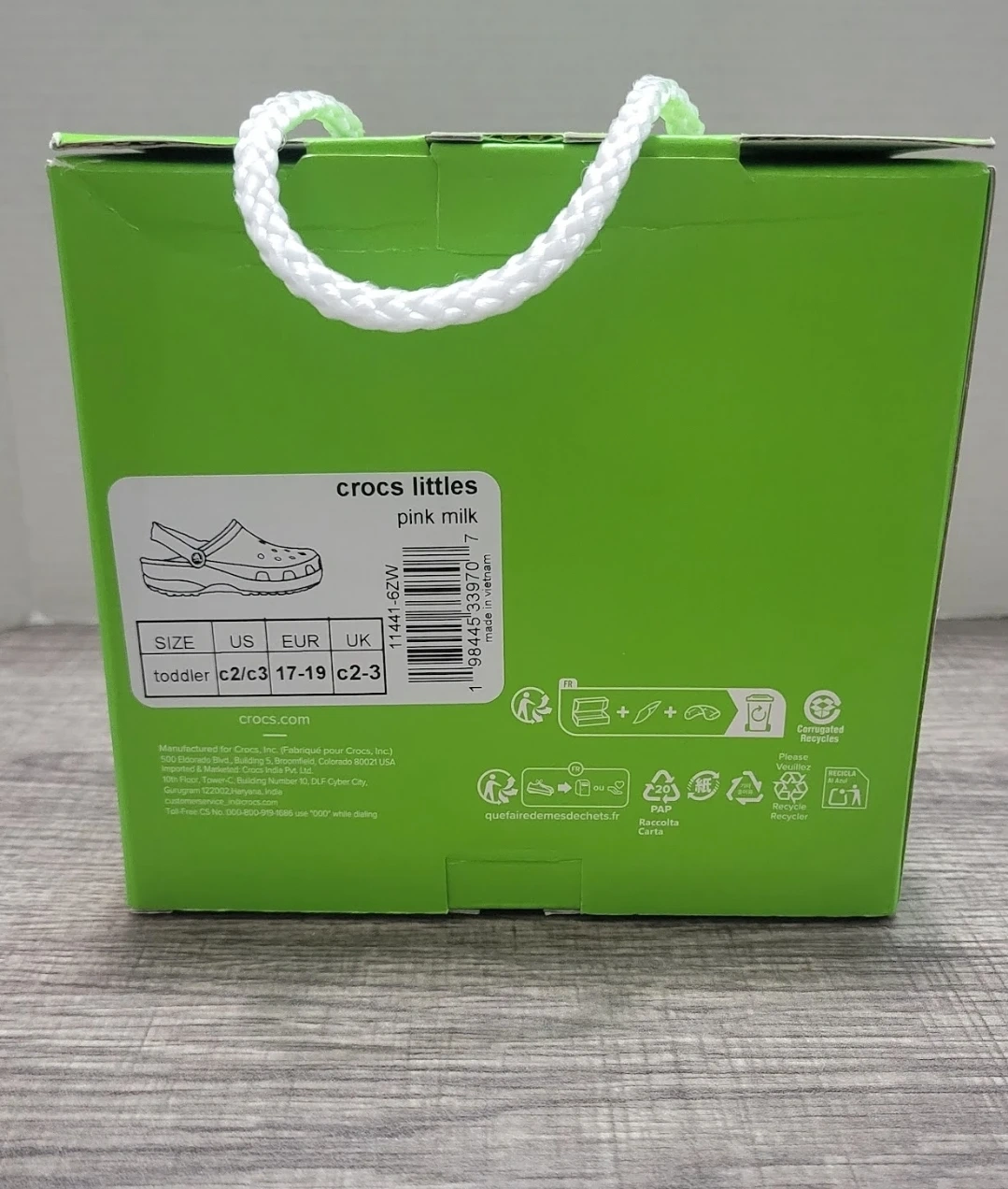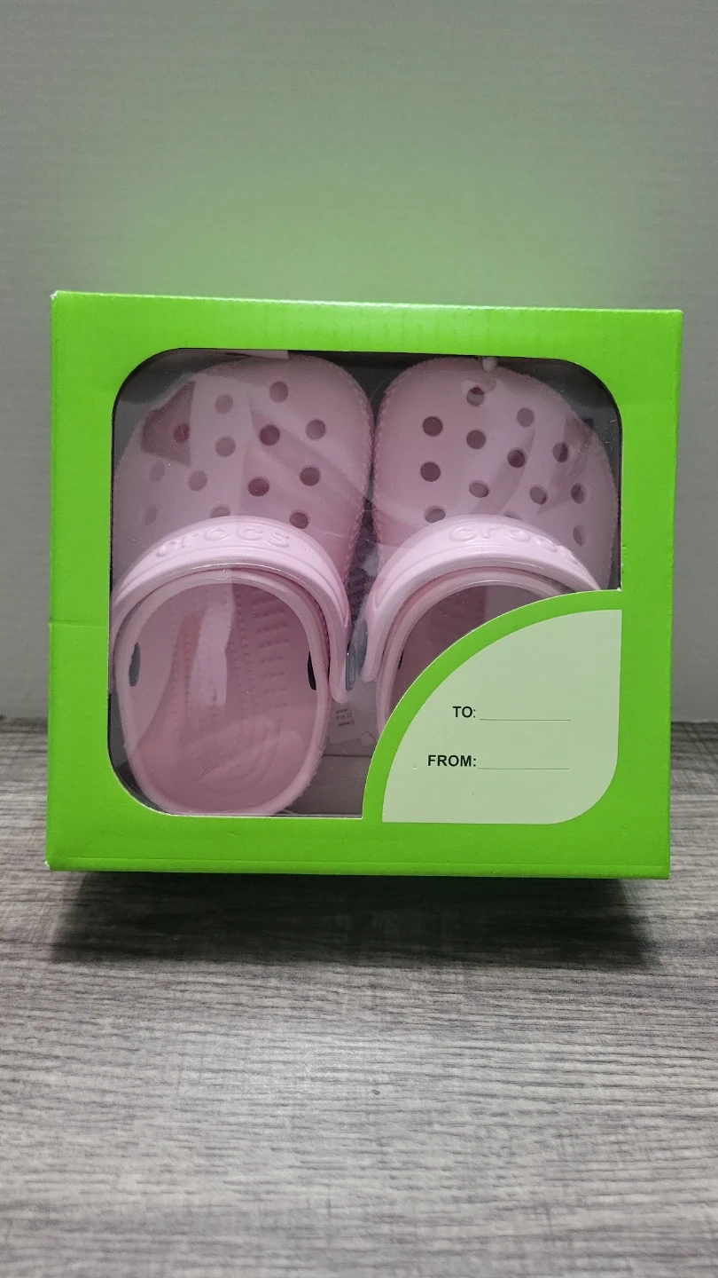 These Crocs Littles clogs are a sweet pink milk color. They're a toddler size C2/C3 (US 7-8, EUR 17-19, UK 6-7). Comes in original gift box packaging.