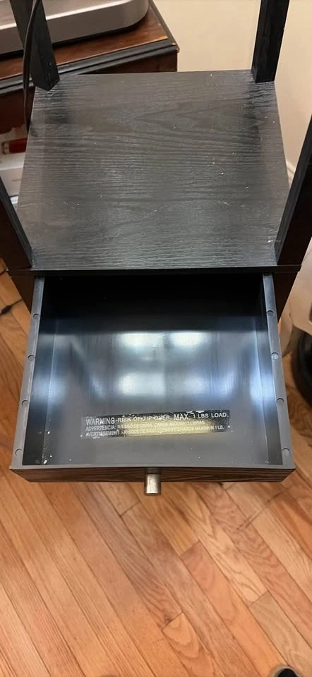Black Floor Lamp with Shelves and Drawer