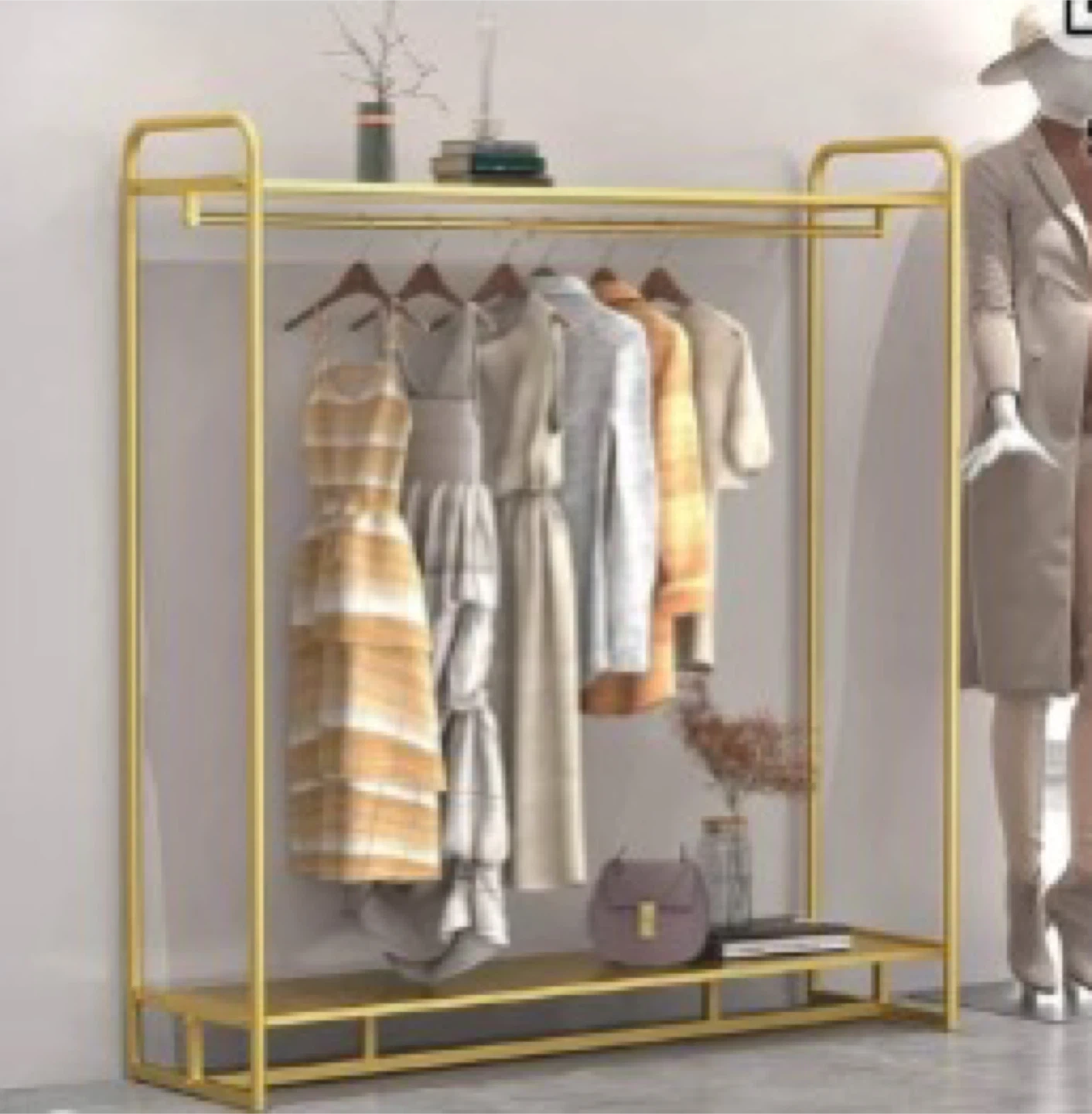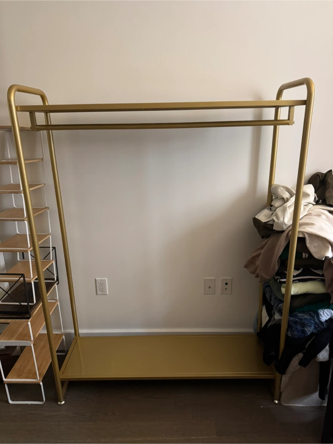 Selling a gold metal clothes rack! It's in great condition and ready to hold your wardrobe. Perfect for adding a touch of style to your room while keeping your clothes organized