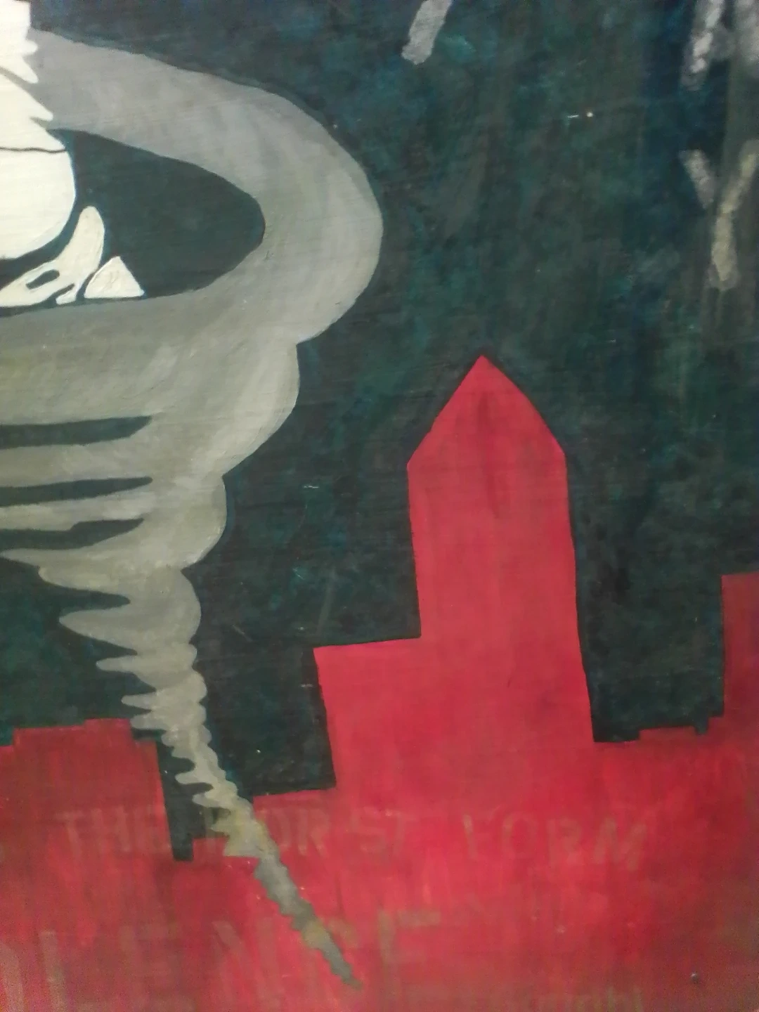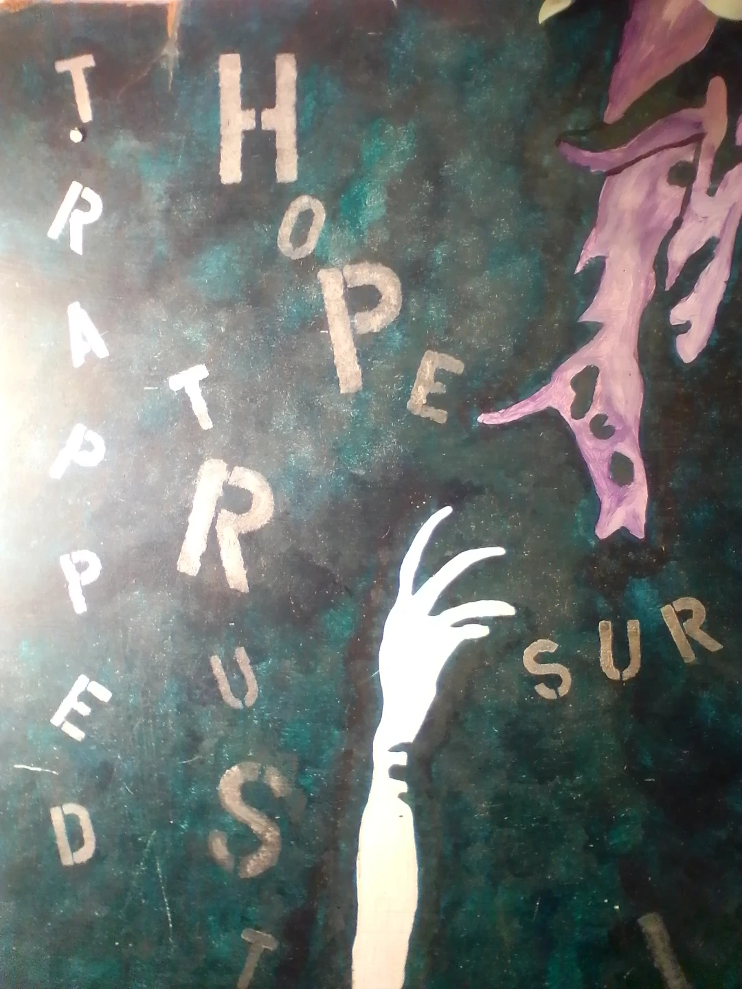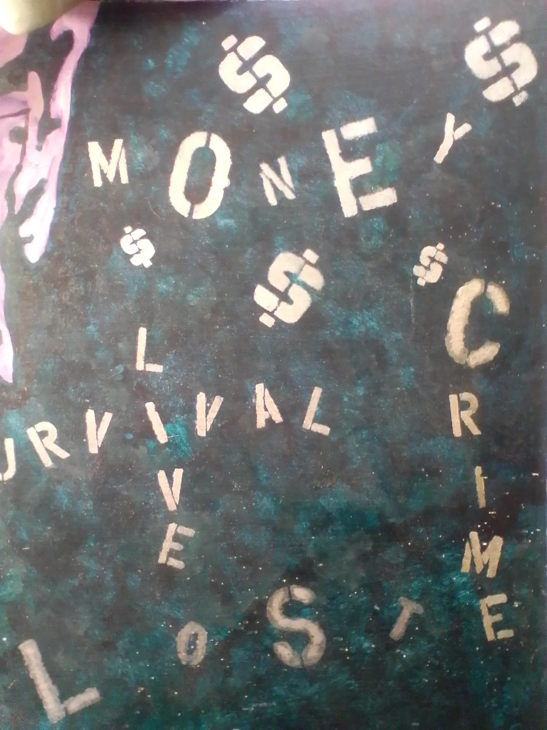 Expressionistic Symbolic form of art piece, painted in acrylic paint. It's depicting the theme for survival mode. A great art piece that would accentuate an artists room or just to decorate a room in the house or office.