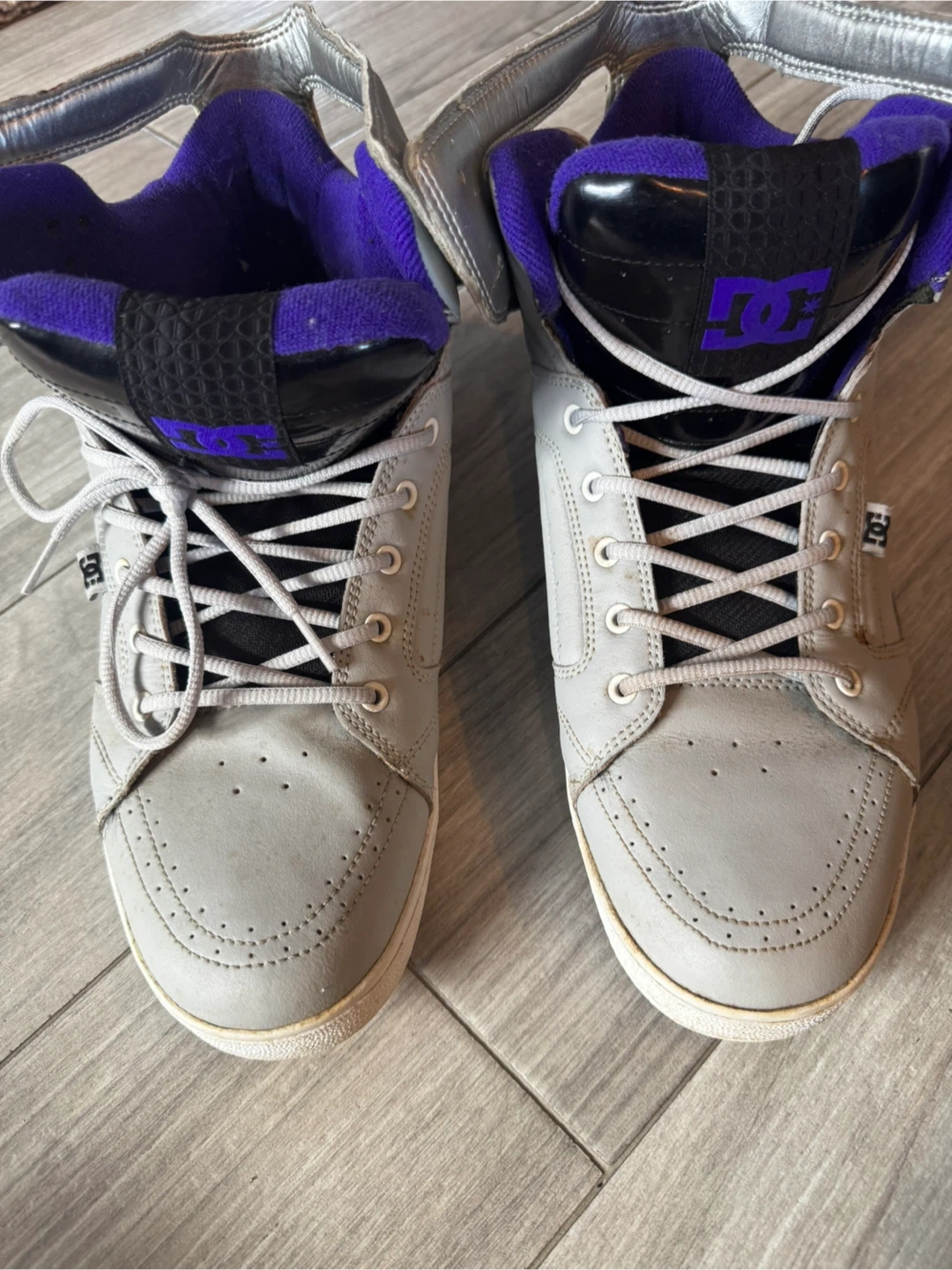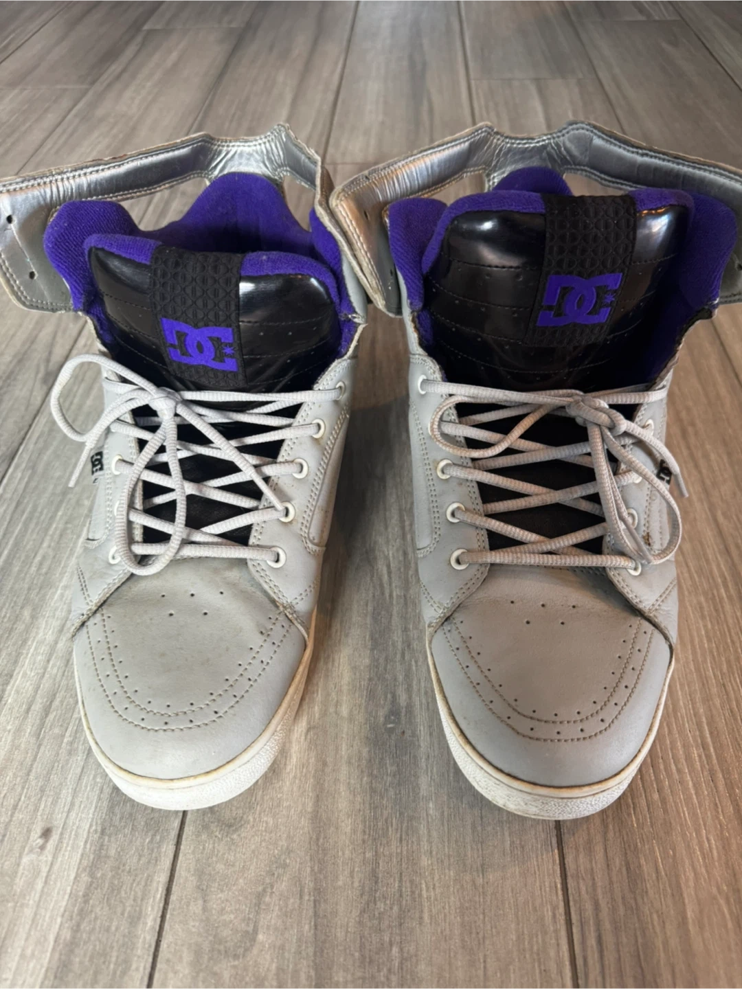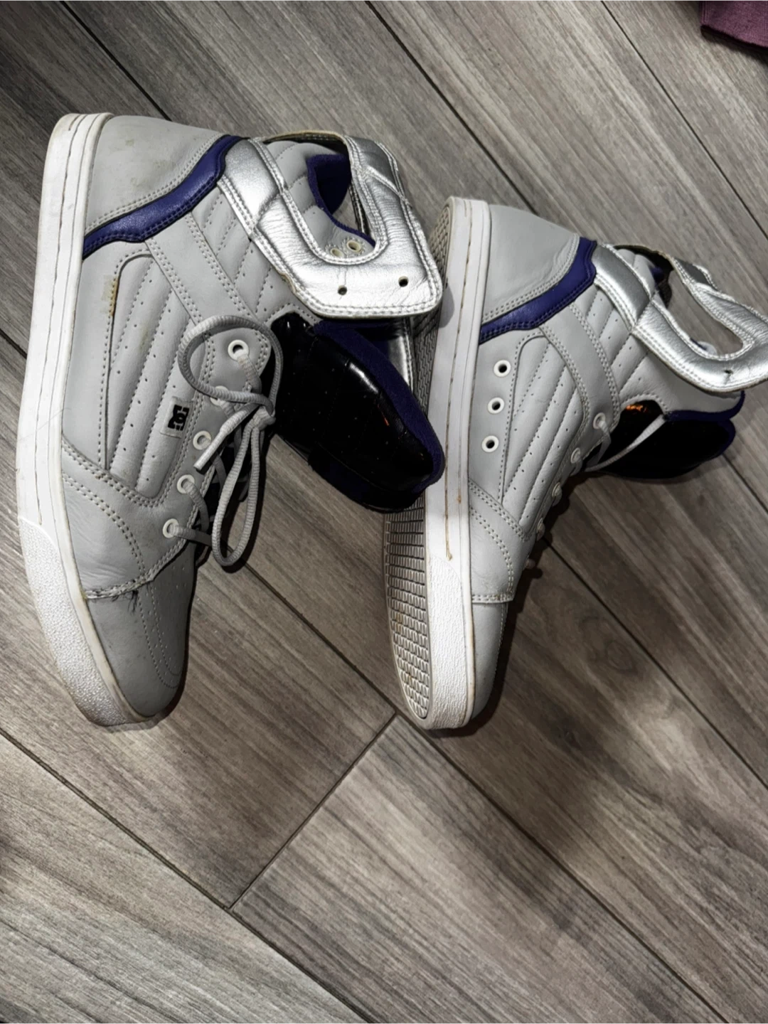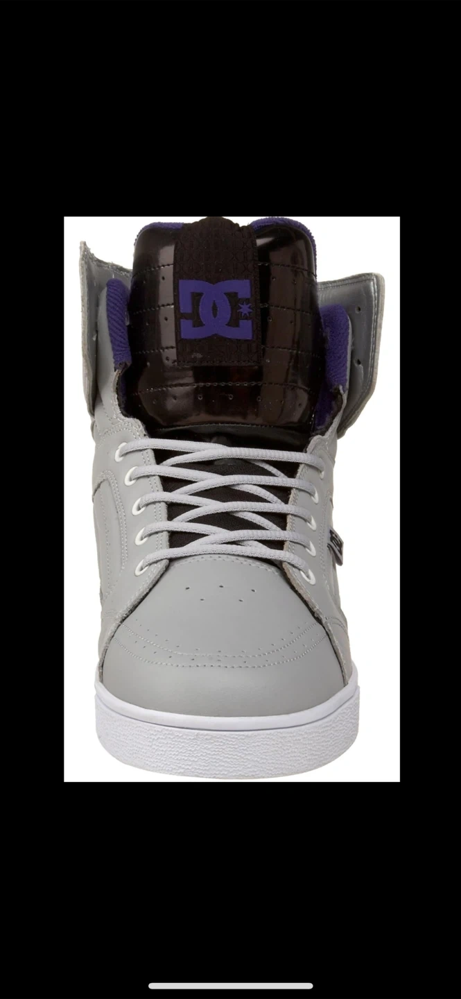 The Vintage DC Men's Galactica High Top Skateboarding Sneakers in Gray, Silver, and Purple offer a nostalgic touch for skateboarding enthusiasts. With a lace-up closure and rubber outsole, these sneakers provide comfort and support for active wear or casual outings. Featuring the DC Shoes brand logo, these 2009 model sneakers in US size 11 and UK size 10 are perfect for summer, fall, and spring seasons. The high-top silhouette and solid color scheme make these sneakers a stylish choice for men looking for a comfortable and functional skateboarding shoe.