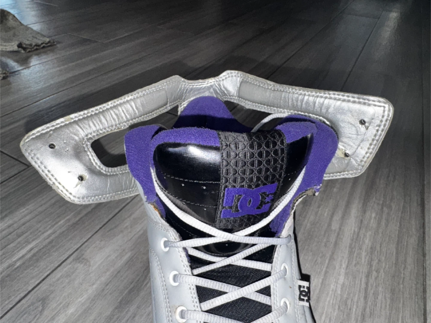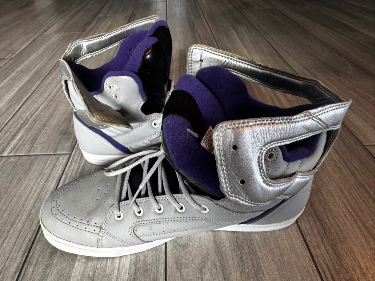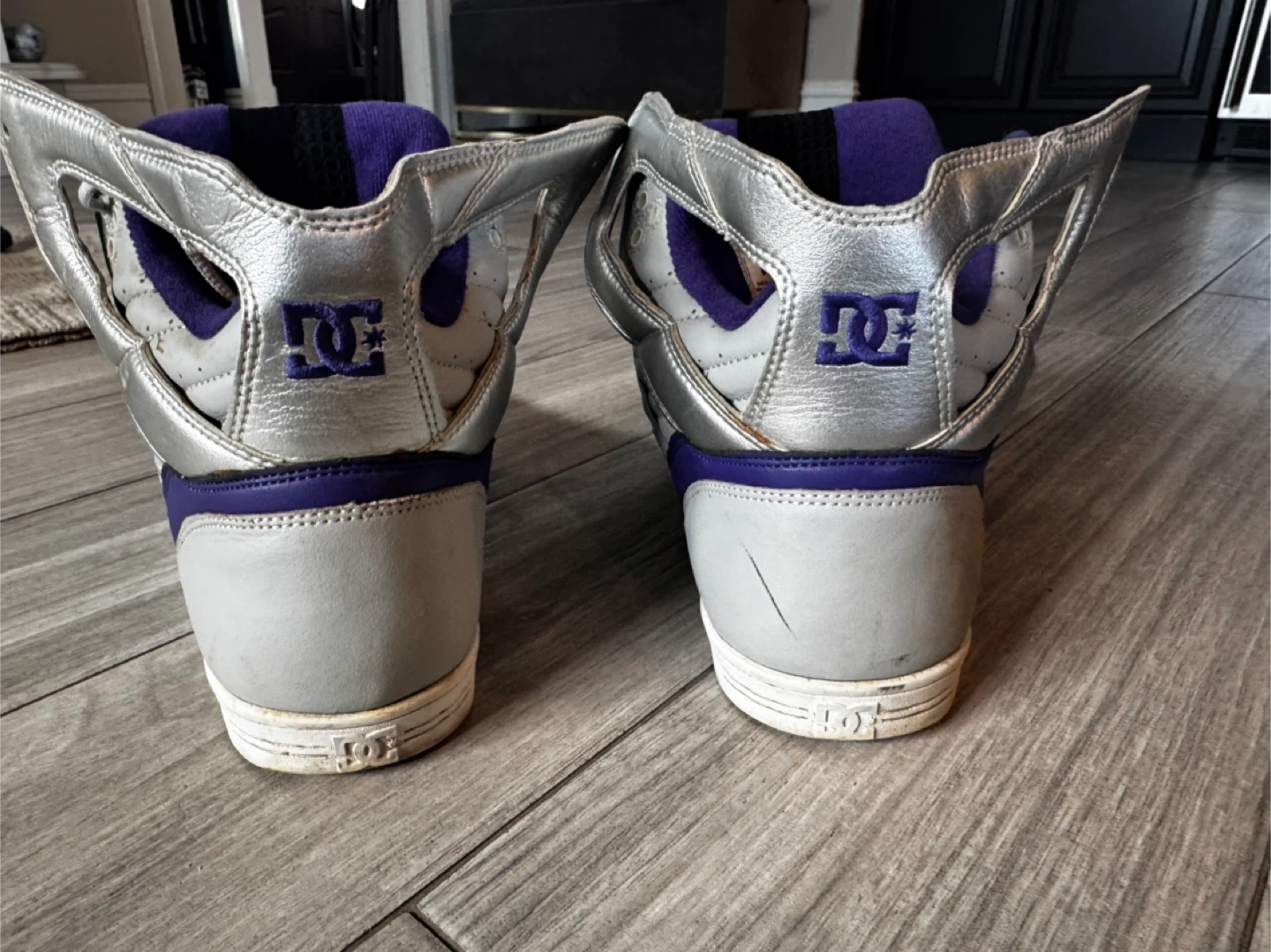 The Vintage DC Men's Galactica High Top Skateboarding Sneakers in Gray, Silver, and Purple offer a nostalgic touch for skateboarding enthusiasts. With a lace-up closure and rubber outsole, these sneakers provide comfort and support for active wear or casual outings. Featuring the DC Shoes brand logo, these 2009 model sneakers in US size 11 and UK size 10 are perfect for summer, fall, and spring seasons. The high-top silhouette and solid color scheme make these sneakers a stylish choice for men looking for a comfortable and functional skateboarding shoe.