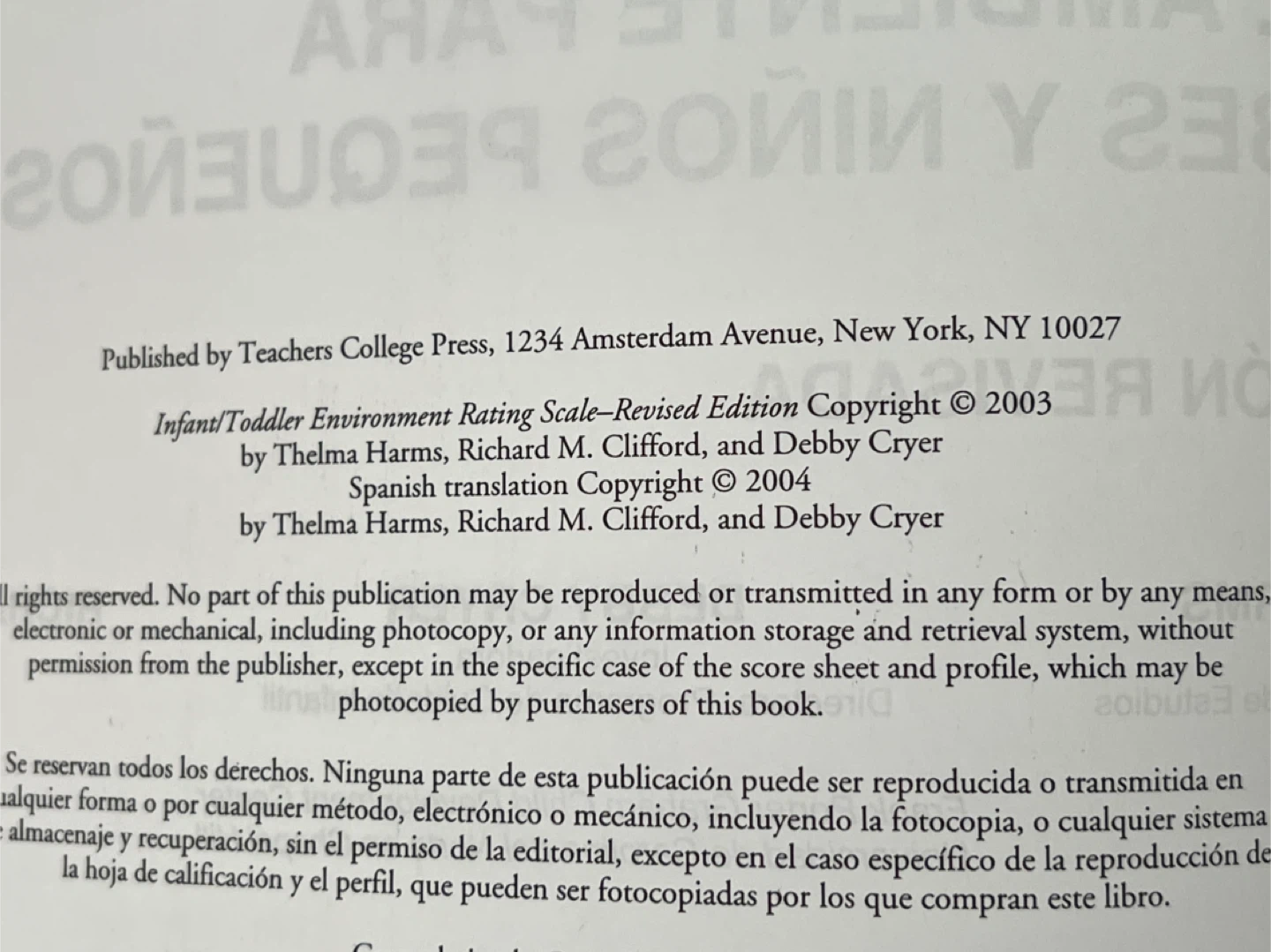 Este libro es una herramienta para evaluar la calidad en un programa de cuidado infantil (0-3yrs old).Se enfoca primordialmente en el ambiente y en las Interacciones entre el proveedor y los niños del programa.