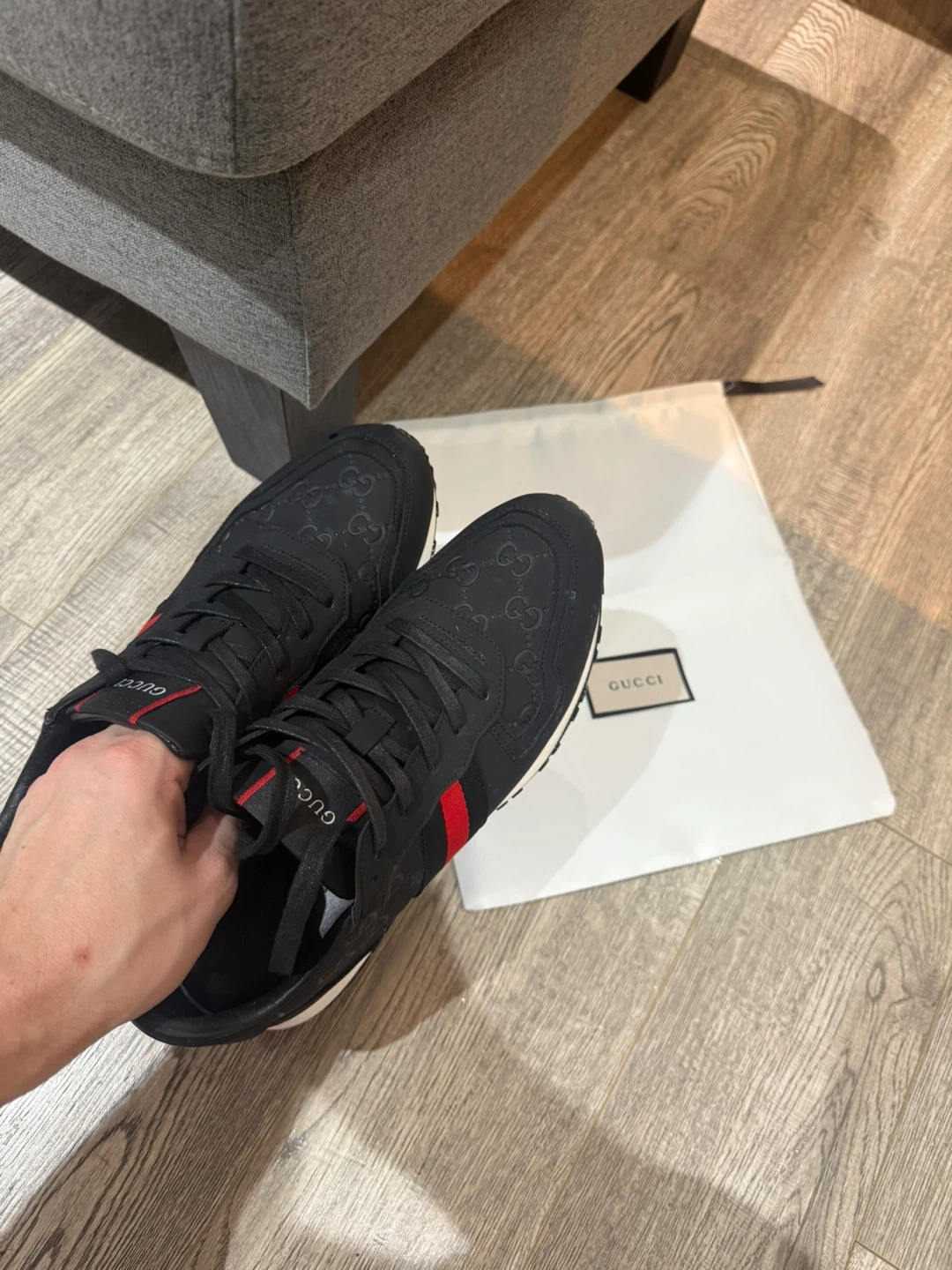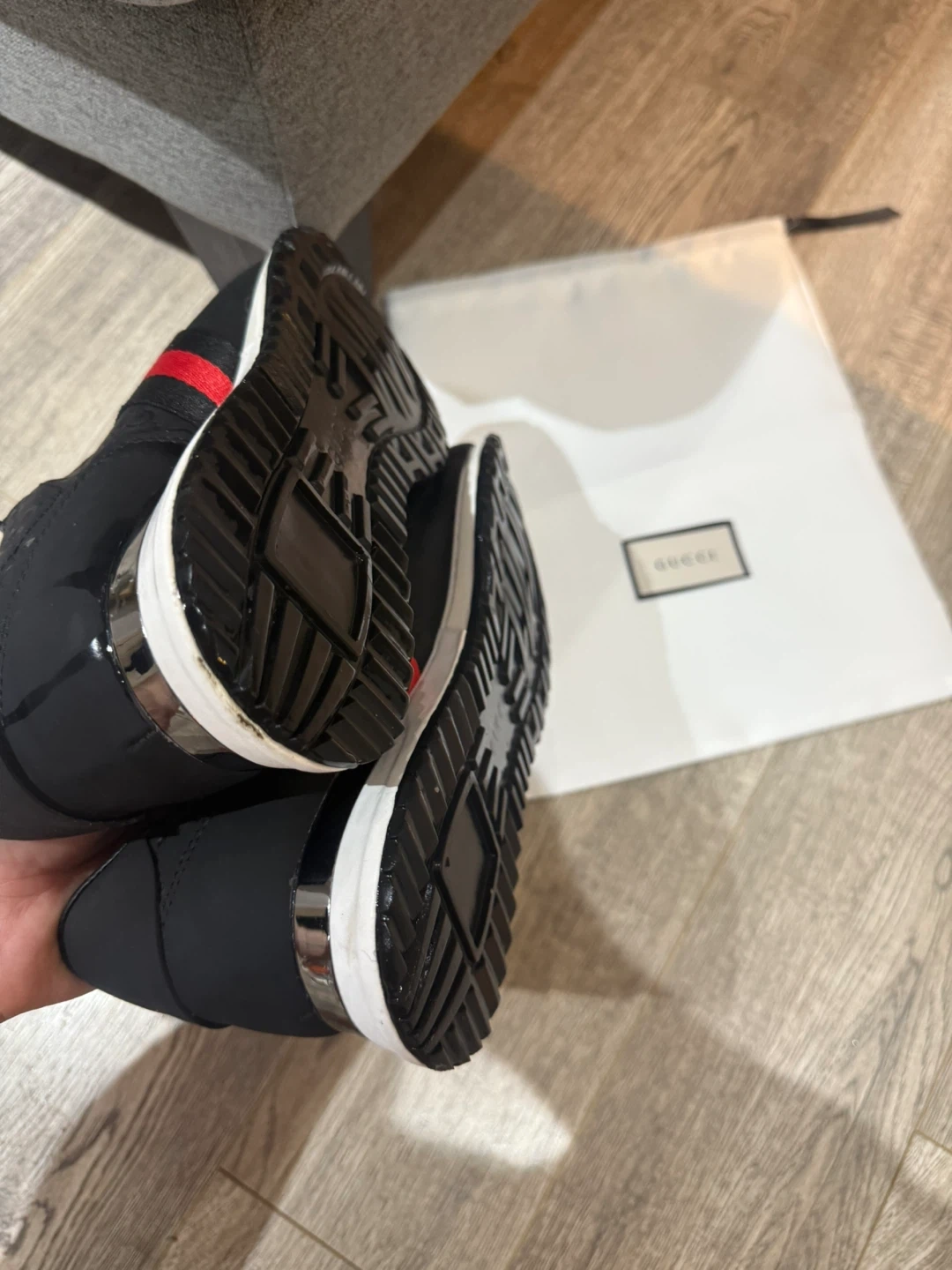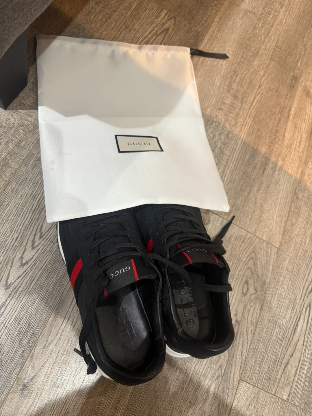 Selling my genuine Gucci sneakers, size 10. They were a gift from friends, and I really love them, but unfortunately, they’re too small for me (I wear 11,5), so they press on my feet.